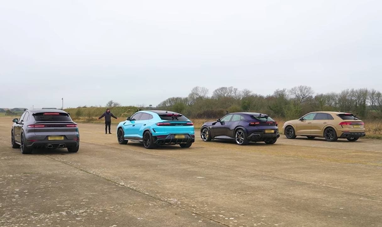 Ferrari Purosangue vs Lamborghini Urus SE vs Porsche Cayenne Turbo e-hybrid vs Audi RSQ8 Performance: who wins the drag race?