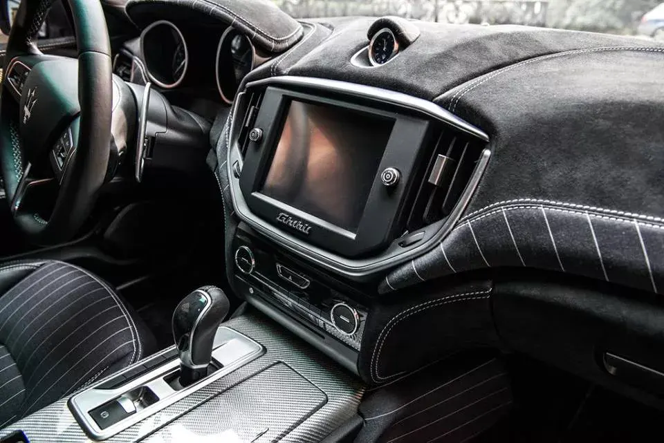 Questa versione unica ed inedita della Maserati Ghibli, inoltre, si caratterizza per interni estremamente elaborati con un cruscotto rivestito in Alcantara nero con tessuto gessato antracite presente anche sui sedili in pelle nera con cuciture a contrasto. Numerosi, inoltre, sono gli inserti in Alutex, un materiale utilizzato da Garage Italia Custom per realizzare diversi elementi dell’abitacolo della sua Ghibli.