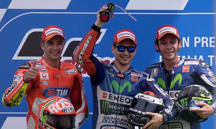 Ottimo risultato per la Ducati di Andrea Iannone – secondo in condizioni fisiche non perfette per via di una microfrattura- che riesce a tenere dietro un Valentino Rossi in rimonta. Vale, partito non bene, si è trovato in 13esima posizione per poi rimontare fino al terzo gradino del podio. Un risultato per lui importante che lo mantiene ancora il leader della classifica mondiale.
