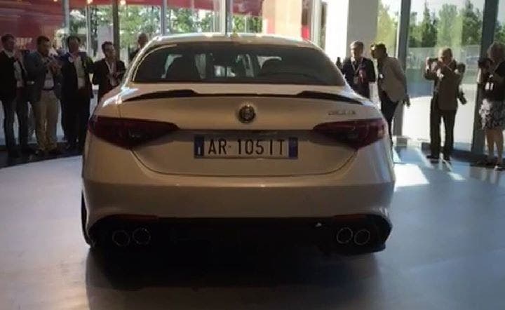 Le foto in questione raffigurano la nuova Alfa Romeo Giulia Quadrifoglio Verde, l’allestimento top di gamma della nuova berlina caratterizzato dall’apposito badge del Quadrifoglio Verde e dai quattro scarichi posteriori suddivisi in due coppie. Per ora, è bene sottolineare, non si conoscono ancora le specifiche tecniche della nuova Alfa Romeo Giulia ed, in particolare, della versione Quadrifoglio Verde ma, tra pochi minuti, finalmente tutti i dati dovrebbero essere rivelati. I rumors più insistenti evidenziano la possibilità che la nuova Alfa Romeo Giulia Quadrifoglio Verde possa presentare un potentissimo motore V6 da 2.9 litri biturbo in grado di erogare una potenza massima di almeno 500 CV. Ricordiamo che la nuova Alfa Romeo Giulia poggia le basi sulla nuova piattaforma Giorgio a trazione posteriore che garantirà prestazioni sportive al top del suo segmento di mercato.
