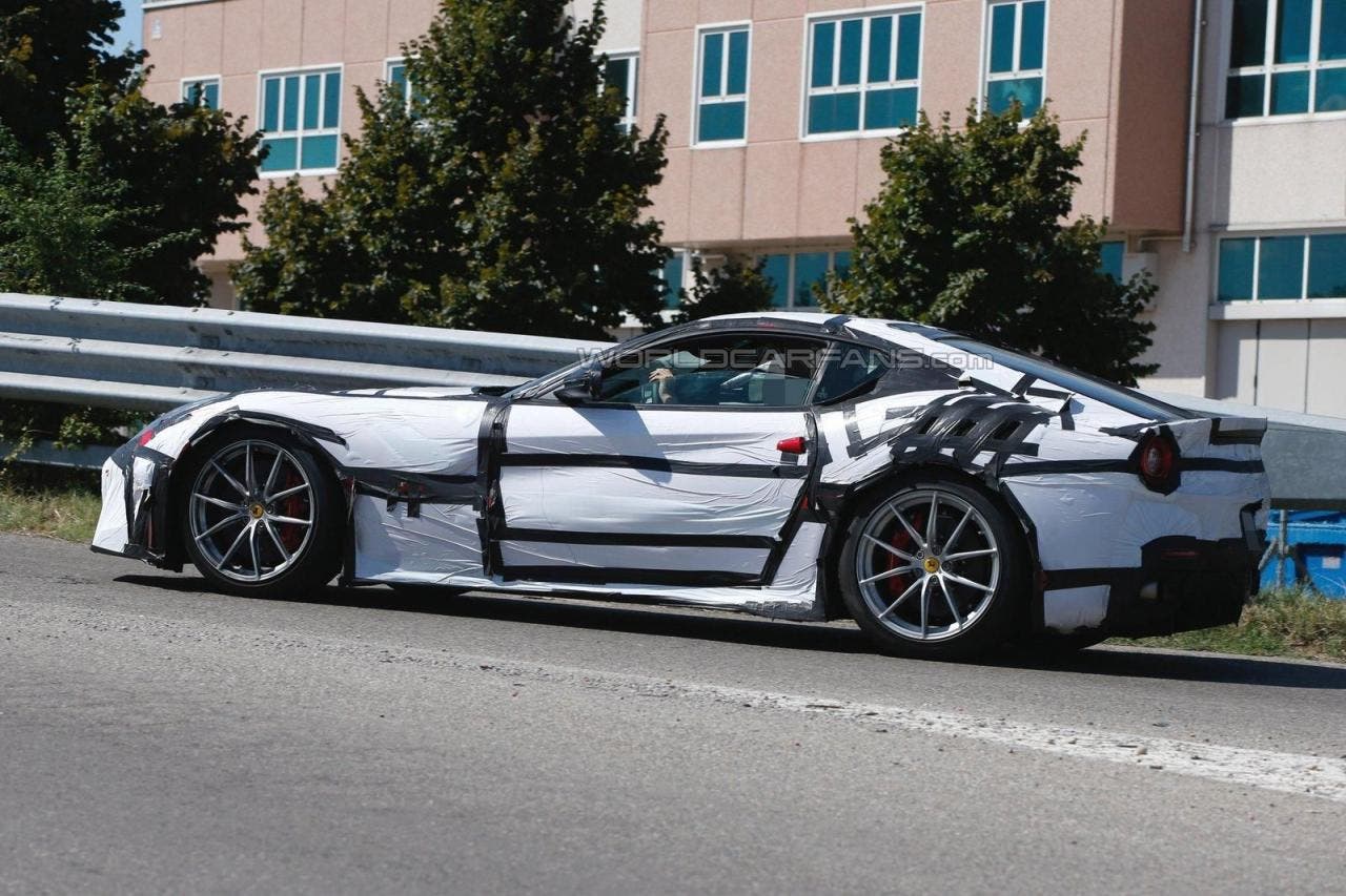 La nuova Ferrari F12 GTO, in queste ore, è stata avvistata, ancora una volta, in strada durante i consueti test nei dintorni di Maranello che rappresentano un passaggio propedeutico per il debutto in pubblico della vettura che, come detto, sarà esposta, con ogni probabilità, al Salone di Francoforte 2015 dove, ricordiamo, Ferrari mostrerà in anteprima anche la nuova Ferrari 488 Spider, versione scoperta della 488 GTB svelata al Salone di Ginevra di marzo scorso.