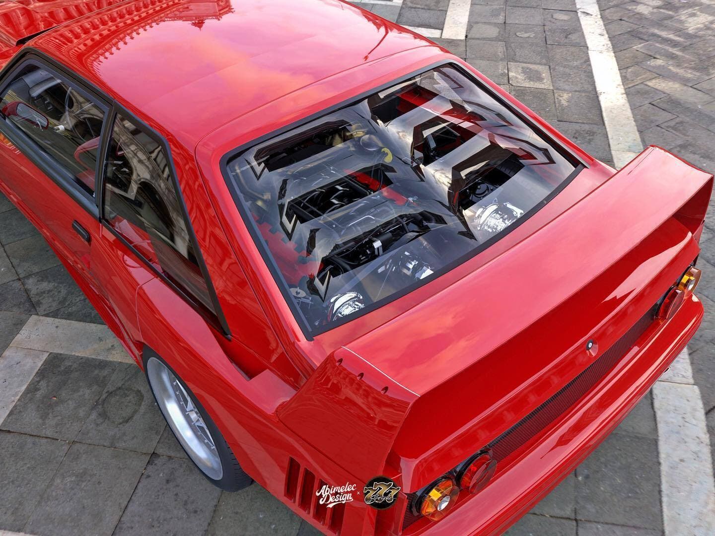 Il tutto è abbinato a una carrozzeria in Rosso Corsa, la tipica colorazione adottata da Maranello sulle sue supercar. Abimelec Design ha immaginato la particolare Ford Mustang Foxbody con il motore Voodoo V8 da 5.2 litri delle Shelby GT350 e GT350R. Questo particolare propulsore a otto cilindri è stato reso ancor più potente grazie all’implementazione di due turbocompressori.