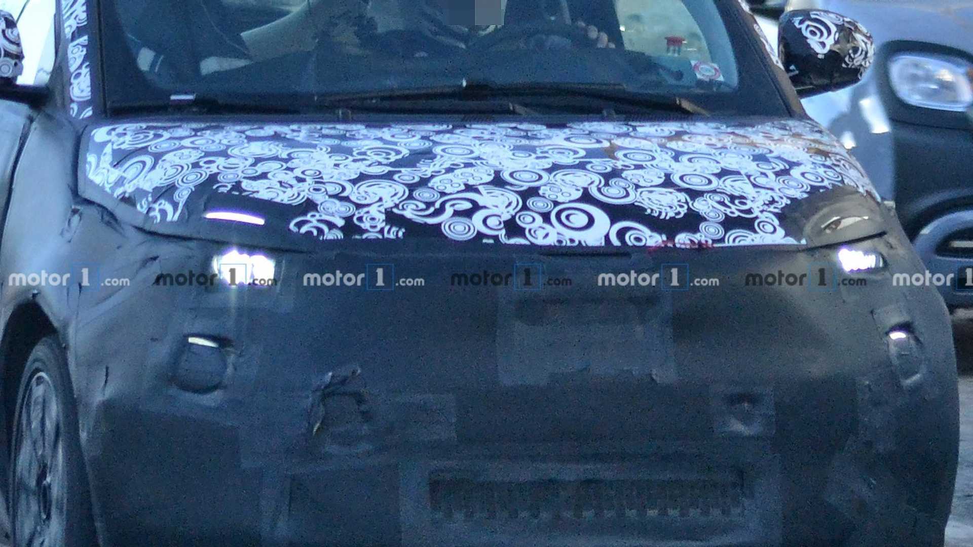 Dando un’occhiata più da vicino alla parte frontale, è possibile vedere quattro luci rotonde (due più grandi e due più piccole) che rispecchiano il layout adottato sulla Fiat 500 di oggi. Questo però non deve ingannarvi visto che sotto il corpo la prossima generazione della city car sarà un’auto completamente nuova dato che verrà impiegata una nuova piattaforma.