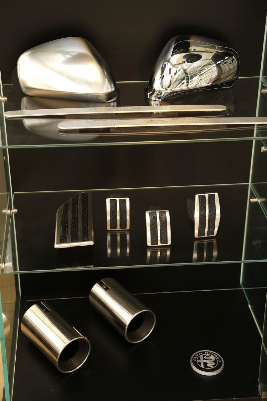 Il modello in questione, proposto nell’immagine qui di sopra, una Giulietta Super 2.0 JTDm da 150 CV con livrea Bianco Alfa, presenta diversi esclusivi accessori Mopar come i terminali di scarico maggiorati, le minigonne laterali (superiori ed inferiori), le calotte degli specchi in carbonio nello spoiler posteriore, il batticalcagno in alluminio illuminato ed il pomello del cambio in carbonio. La dotazione di Mopar per la nuova Giulietta si completa con il kit tendine parasole specifici.
