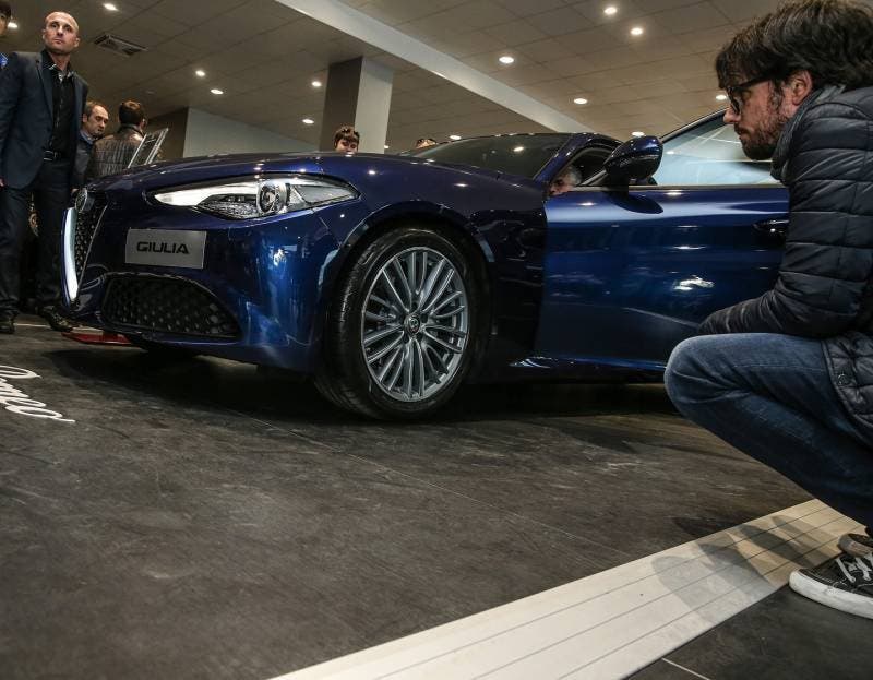 Alfa Romeo Giulia continua il suo tour espositivo in giro per il mondo. Ieri è toccato a Pesaro dove presso la concessionaria del gruppo Diba è avvenuto il debutto in anteprima alla presenza di tantissimi curiosi tra cui il sindaco Matteo Ricci e il Presidente di regione Luca Ceriscioli. Si è trattato di un vero e proprio evento, che come detto anticipa di poco l’arrivo vero e proprio sul mercato di questa vettura, che rappresenta forse la novità automobilistica più importante di questo 2016. Probabilmente sarà maggio il mese giusto per l’esordio di Alfa Romeo Giulia sul mercato con la partenza delle ordinazioni e il primo ‘Porte aperte’. Ovviamente al momento manca ancora la conferma di ciò, conferma che comunque dovrebbe arirvare a breve, in base a quanto riportano i bene informati.