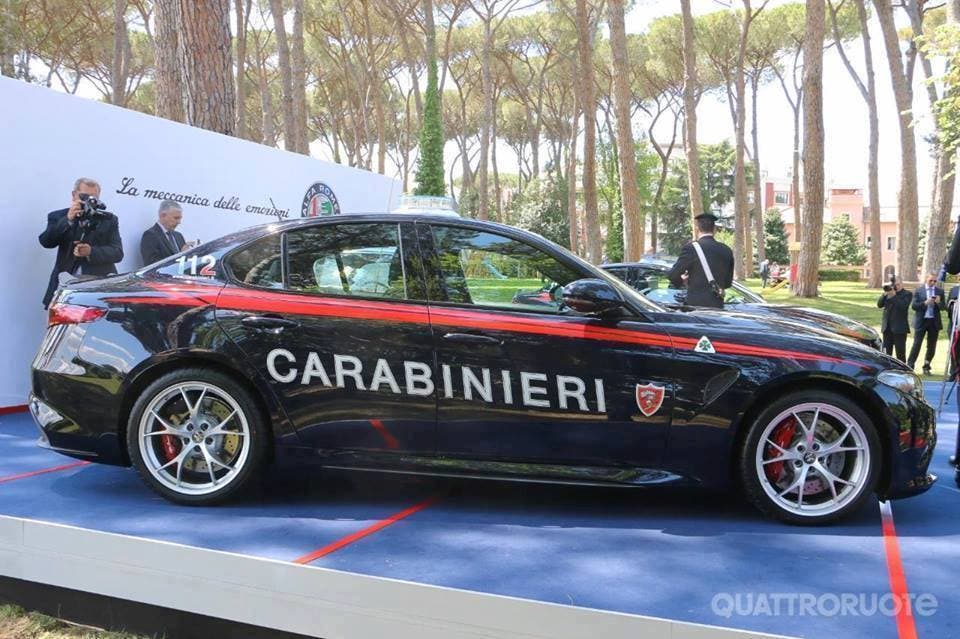 Tutte le foto della Giulia Quadrifoglio verde in livrea Carabinieri in esclusiva: