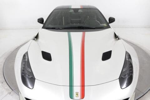 Presente anche una striscia da corsa che corre al centro della Ferrari F12tdf Bianco Italia la quale rende omaggio alla bandiera italiana. Descritto da Ferrari of Long Island come un veicolo appartenuto ad un solo proprietario, il telaio n°227673 viene fornito anche con telecamere anteriore e posteriore, display per passeggero, contagiri giallo, sistema audio premium, sistema di scarico in titanio e sollevatore per la parte frontale.