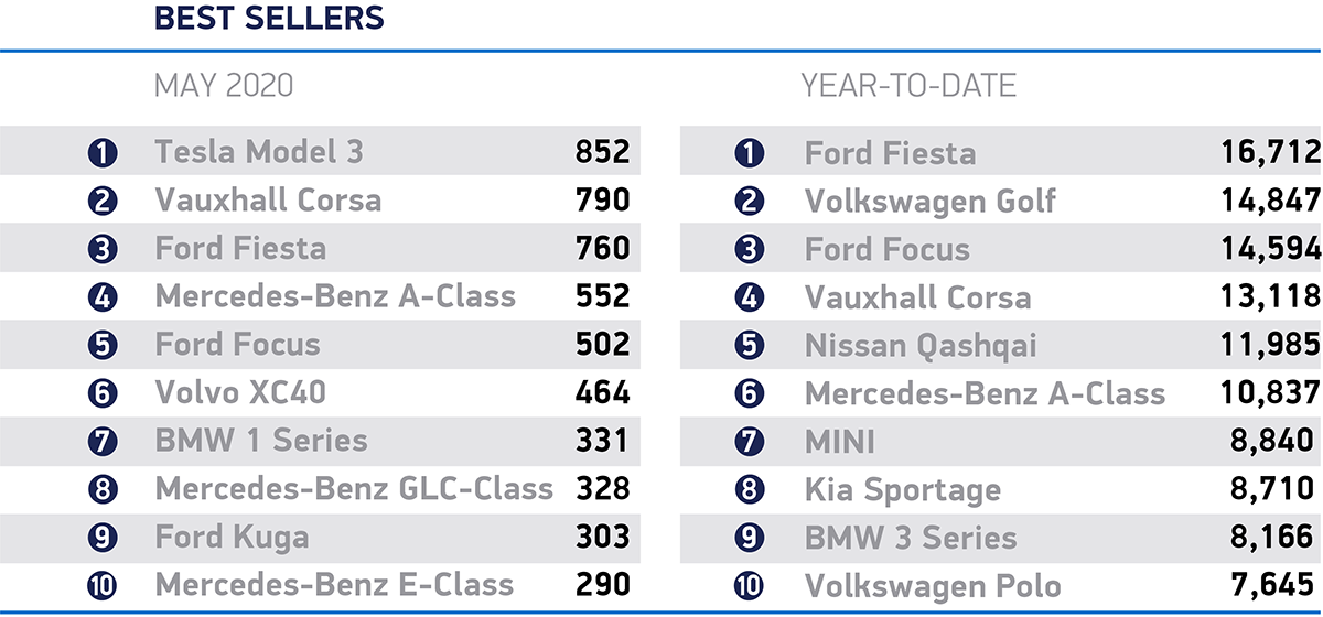 SMMT ha riportato dei forti cali in tutti i segmenti e tipi di carburante, a parte i veicoli elettrici che hanno registrato 429 esemplari in più. Il mercato complessivo ha registrato una diminuzione del 51,4% nei primi cinque mesi del 2020, con poco più di mezzo milione di vendite rispetto a più di 1 milione registrato nello stesso periodo del 2019.