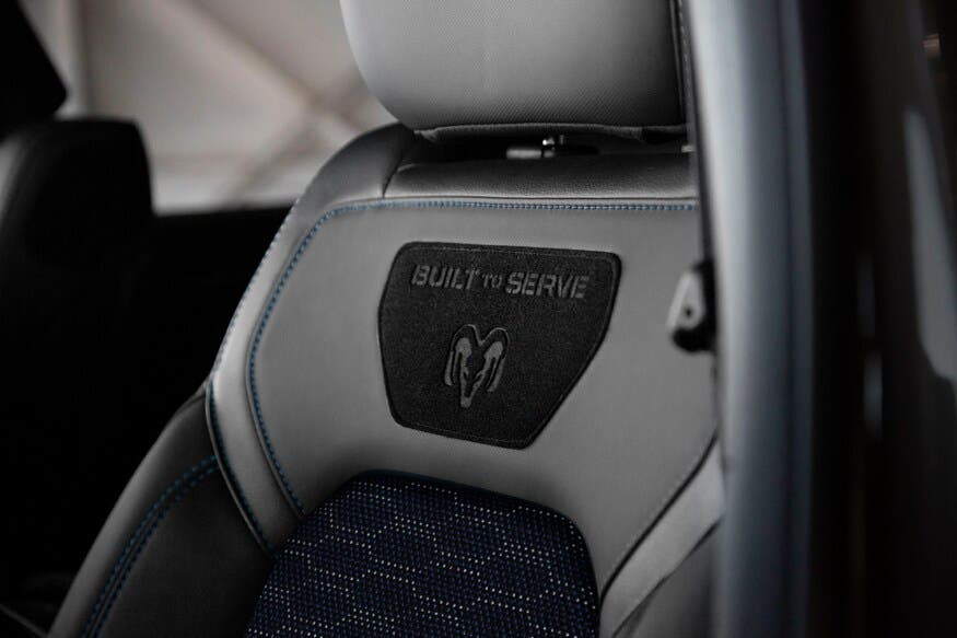 A parte la speciale scelta del colore, Ram equipaggerà ogni edizione Built to Serve con una bandiera americana e una seconda decalcomania che recita “Built to Serve” sui pannelli dei quarti posteriori. Anche i cerchi delle ruote corrispondono a uno dei due colori offerti e, appena sotto, le ruote standard da 20 pollici presentano una finitura grigia. Nel frattempo, la fascia frontale indossa una griglia interamente nera, paraurti neri e badge Ram su badge neri invece della finitura standard.