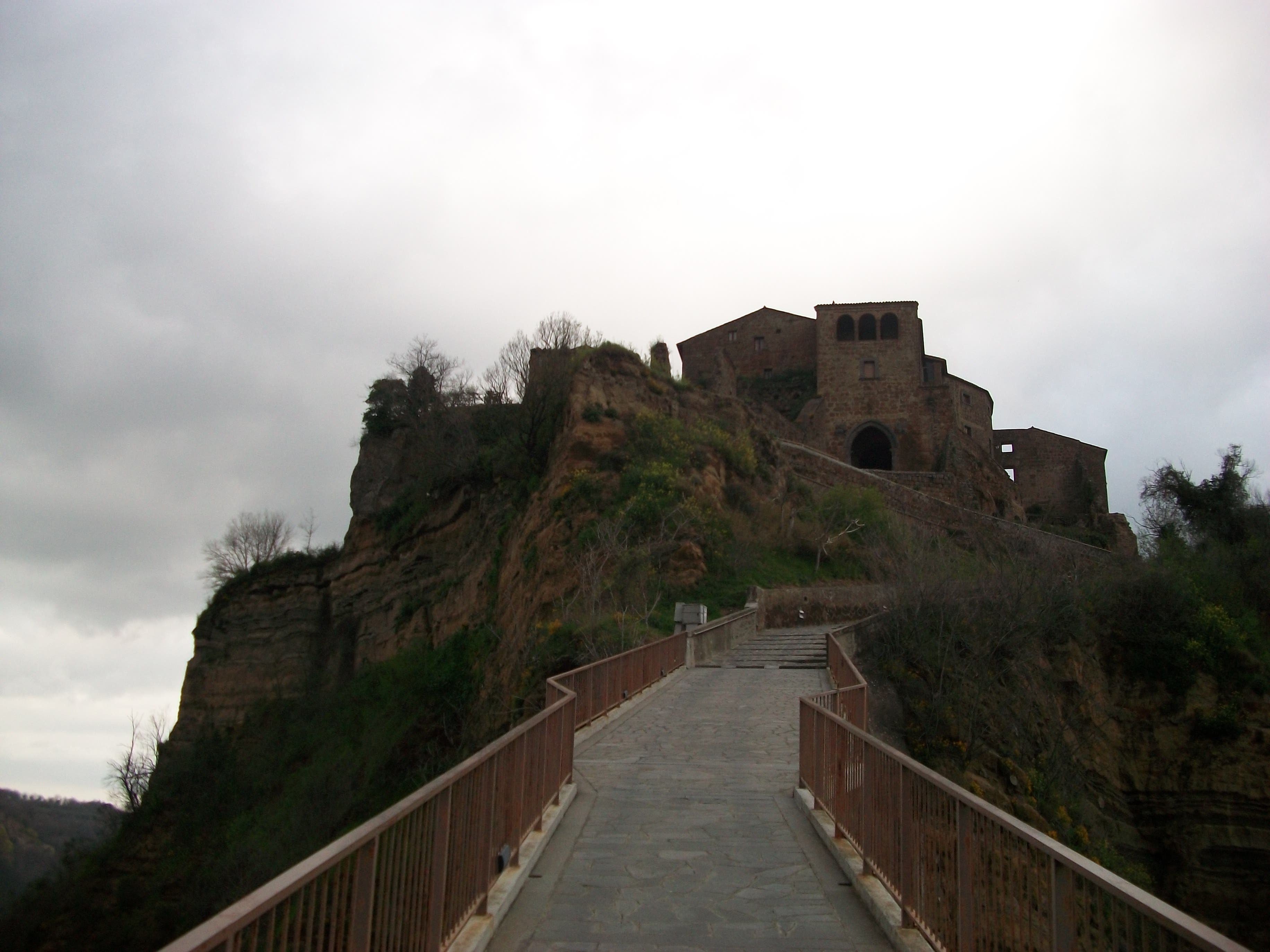 A soli 28 chilometri da Viterbo, poco più di un’ora e mezzo da Roma, al centro della valle dei calanchi, isolata e raggiungibile solo attraverso un ponte pedonale in cemento edificato nel 1965, sorge la civita di Bagnoregio.
