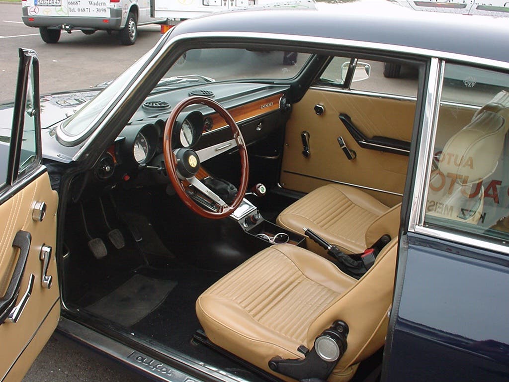 Profonde sono anche le modifiche agli interni: una nuova plancia dal design moderno e con inserti in legno accoglie una strumentazione più completa, mentre il tunnel centrale assume una forma più complessa e ricca (dove previsto, accoglie anche la consolle dell’aria condizionata). Il volante ha una forma marcatamente a calice e di nuovo disegno, molto più confortevole e sobrio sono i sedili, con poggiatesta regolabili (che scorrono su originali guide in legno).