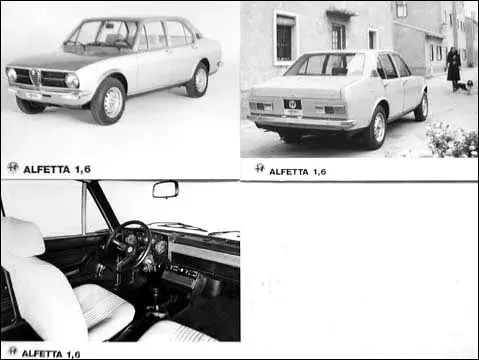 Nonostante le dimensioni più generose ed il peso lievemente superiore, l’Alfetta 1.6 raggiunge una velocità massima di 175 Km/h, restando saldamente al vertice della categoria. Per giustificare la differenza di prezzo rispetto alla sorella maggiore, anche gli allestimenti vengono ridotti: all’interno la corona del volante è in finta pelle invece che in legno, la plancia è rivista e la strumentazione ha i fondini azzurri. Ben più evidenti sono le modifiche all’esterno, dove vi sono ora solo due fanali anteriori e la calandra è ornata con una sola modanatura cromata invece che tre. Le astine dei tergicristalli e le feritoie lamellari per lo sfogo dell’aria dell’abitacolo vengono anch’esse private delle finiture cromate, rimpiazzate da elementi neri. Anche i paraurti hanno un aspetto più dimesso a causa dell’assenza dei rostri e con una forma, quello posteriore, meno avvolgente. Nel 1977 la carrozzeria viene unificata alla 1.8.