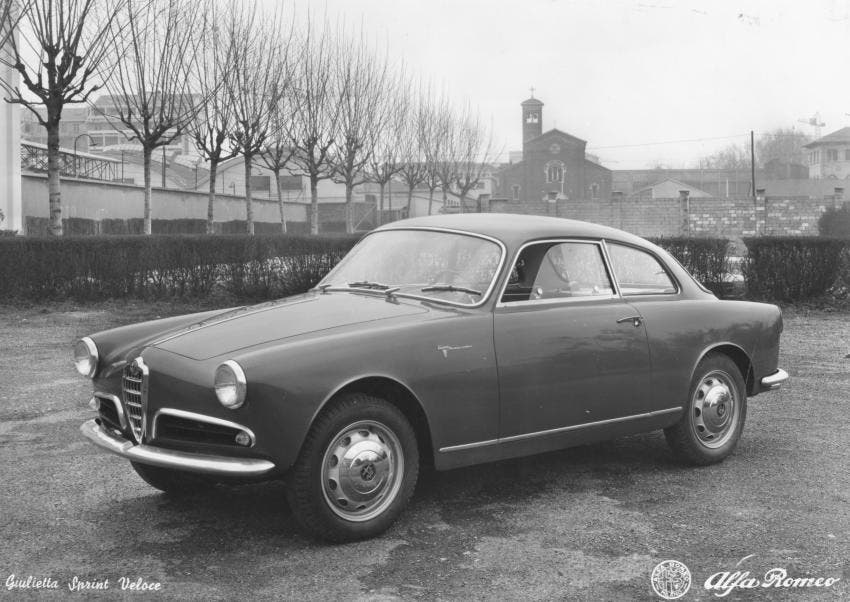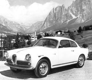 La Giulietta Sprint viene presentata al Salone di Torino il 21 aprile 1954, ma l’11 Aprile nel cortile del Portello si è già avuta un’anteprima per gli addetti ai lavori e le autorità: da un elicottero erano scesi due attori negli shakespeariani costumi di Romeo e Giulietta.