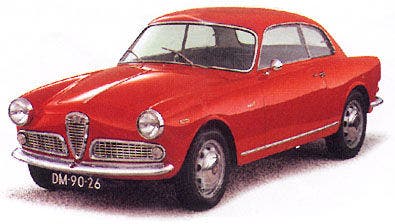 Meno di un anno più tardi, il team di progettazione guidato da Orazio Satta Puliga ha già messo in strada un primo prototipo, un compatto coupé dotato di un quattro cilindri 1100 cc. Responsabile della meccanica è Giuseppe Busso, il quale si adopera per mantenere la distribuzione bialbero e adottare il basamento in alluminio, già sperimentato – senza giungere in produzione per difficoltà di messa a punto – sulla 1900. Busso vuole portare la cilindrata a 1300 cc., una scelta appoggiata dalla direzione che vuole evitare di sovrapporre il modello alla Fiat 1100/103.