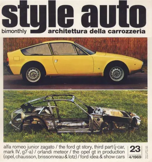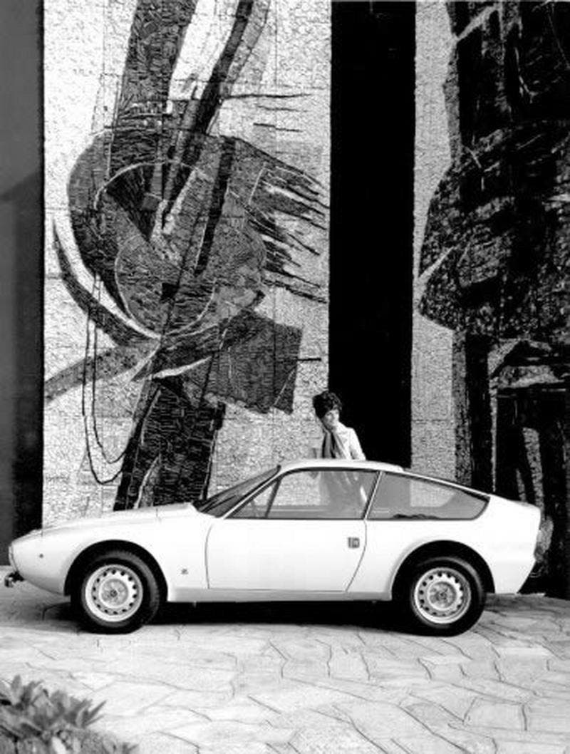 La GT 1300 Junior Z è una coupé a due posti dalla linea moderna e slanciata, con linee spigolose, finiture essenziali e ampie superfici vetrate che anticipano le tendenze degli anni Settanta.