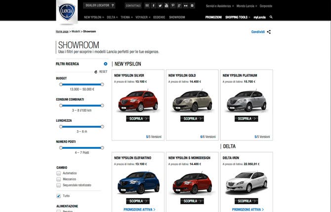Un progetto che esprime una nuova idea di portale che supera le categorie tradizionali: più di una vetrina, più di uno spazio istituzionale. In sintesi, il sito lancia.it è un virtual dealership esclusivo e accogliente, ricco di funzionalità user-centered pensate per guidare chi naviga nella scelta della propria auto ideale.