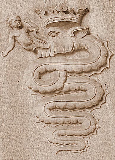 Non si fece altro che utilizzare il Biscione su sfondo azzurro (altro simbolo totemico dei longobardi) peraltro già utilizzato come amuleto appeso al collo e dipinto sulla loro bandiera, alla croce rossa cittadina. Il serpente apparteneva alla leggenda (risalente addirittura al neolitico) ed accomunava tutte le razze da Oriente ad Occidente, persino riportato nella Bibbia.