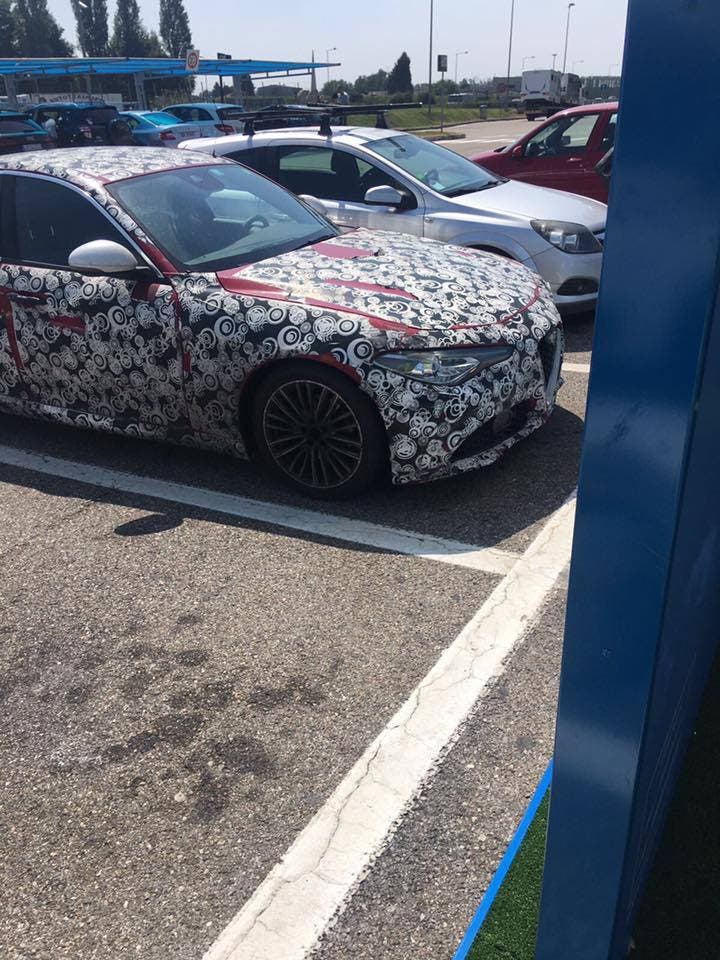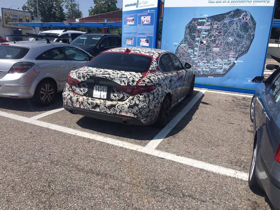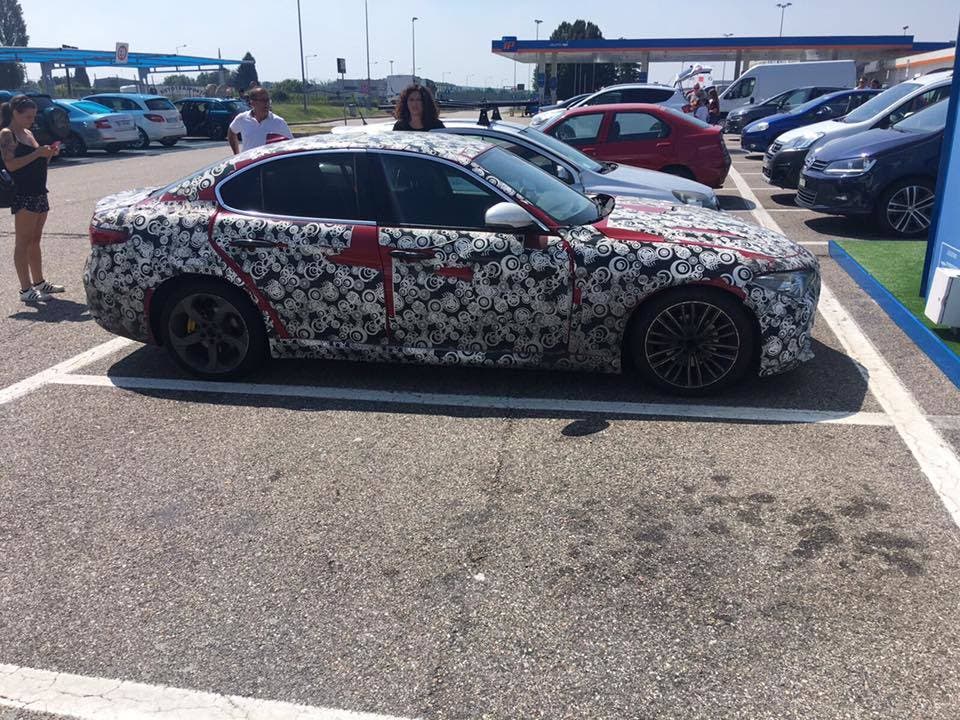 Se state girando per le autostrade italiane in queste calde giornate estive potreste imbattervi in un prototipo di Alfa Romeo Giulia opportunamente camuffato con le tradizionali protezioni che le case costruttrici montano su vetture di test per nascondere novità non ancora presentate in via ufficiale. Oggi vi segnaliamo alcune foto pubblicate dalla pagina Facebook Tiny Cars che ci mostrano un esemplare dell’Alfa Romeo Giulia in sosta in un’area di servizio con la carrozzeria protetta dai ben noti adesivi che troviamo sui prototipi in test.