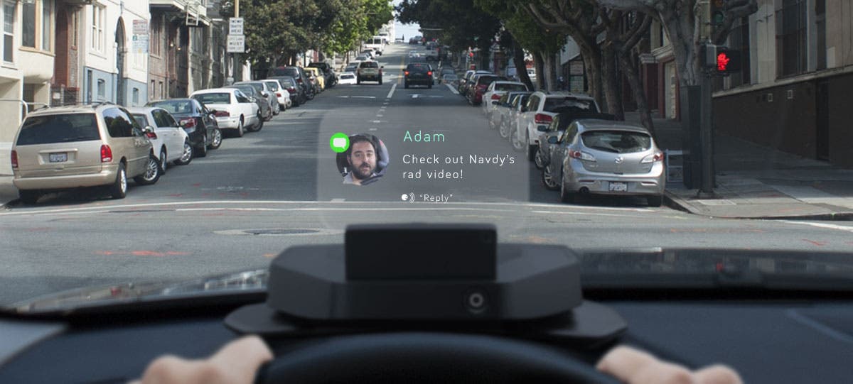 Navdy, invece, non è una semplice evoluzione bensì una profonda rivoluzione. Tutto parte dal concetto base che la tecnologia nell’auto è sì vantaggiosa ma al tempo stesso può risultare pericolosa. Per poter ottenere le informazioni dal navigatore tradizionale bisogna spostare lo sguardo, anche se solo per pochi istanti, dalla strada comportando dei seri rischi a livello di sicurezza. Proprio per questo motivo è stato utilizzato un Head up Dispaly (HUD) da 6 pollici su cui vengono proiettate tutte le informazioni di cui abbiamo bisogno. Il punto di forza di questo apparecchio è la possibilità di rimanere sempre concentrati sulla strada. Se tutto questo non fosse già sufficiente, i comandi vocali e le Air Gestures permettono di avere il pieno controllo di tutte le funzionalità: rispondere al telefono, inviare un sms, avviare la riproduzione musicale e molto altro ancora.