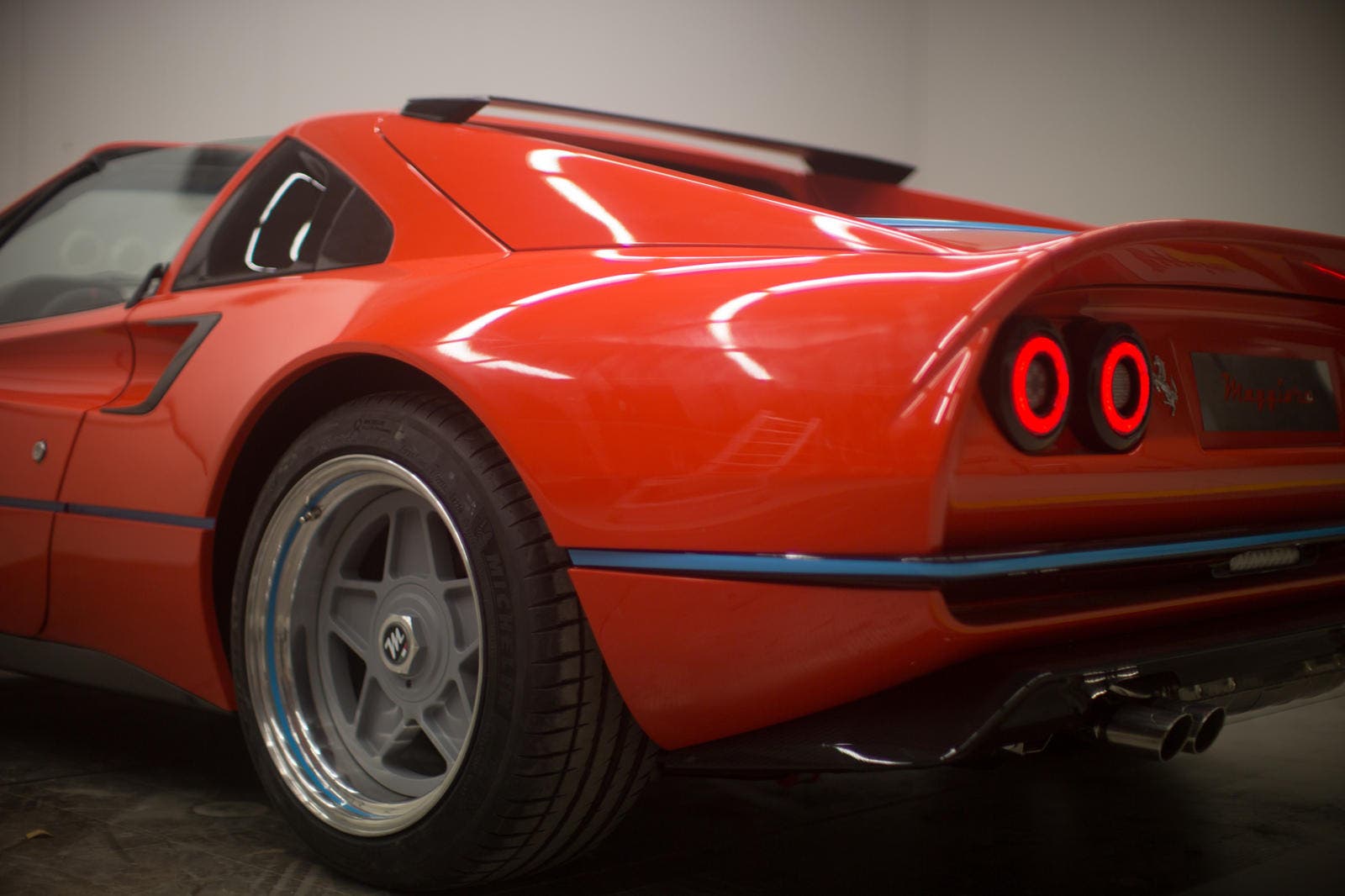 La Ferrari 308M è il primo progetto restomod di Maggiore, ma non si capisce. Può sembrare simile alla 308 su cui si basa, ma i pannelli della carrozzeria della 308M sono completamente nuovi e realizzati in fibra di carbonio. Alcuni degli stili originali, inclusi gli iconici fari a scomparsa, hanno dovuto essere abbandonati per le strisce LED orizzontali a causa dei moderni standard di omologazione.