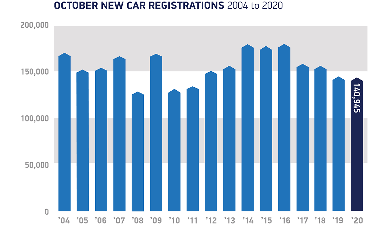 L’arrivo di nuovi modelli e di incentivi finanziari hanno inizialmente contribuito a sostenere il mercato automobilistico britannico ma l’introduzione di un nuovo lockdown nel Galles ha contribuito a far registrare un -25,5% a fine ottobre.