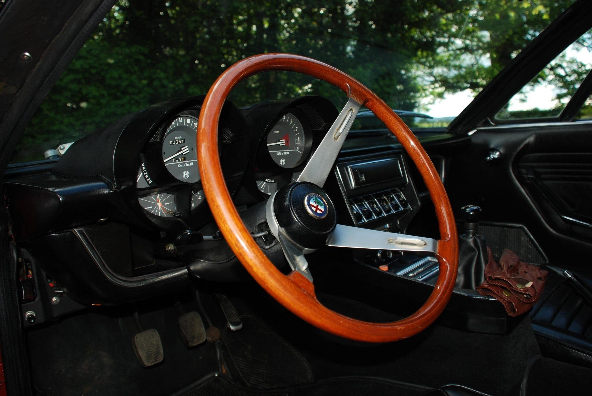 Secondo quanto riportato nell’elenco di vendita, questa Alfa Romeo Montreal è collegata anche ad Alfaholics, gli specialisti di ricambi Alfa Romeo. In particolare, la vettura è stata utilizzata per sviluppare alcune delle loro parti, incluse le sospensioni Fast Road. L’abitacolo è rivestito in pelle nera con tappetini e plastiche abbinati. È stato installato anche un isolamento acustico aggiuntivo nel 2011.