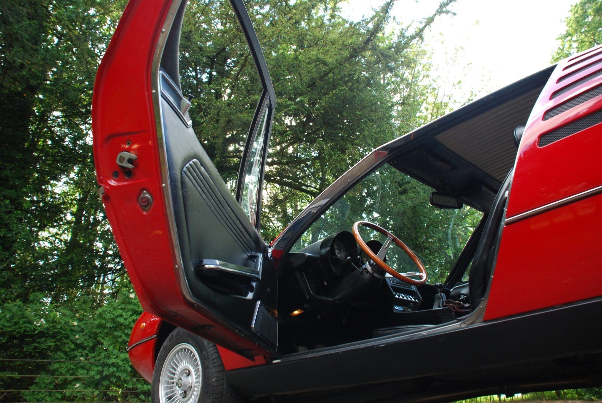 L’auto proposta all’asta da Bring A Trailer era originariamente dipinta in arancio mentre ora è rivestita in un rosso piuttosto accattivante, applicato nel 1988 dal suo precedente proprietario. Oltre a questo, il bolide dispone di alcune caratteristiche davvero interessanti come il condotto NACA nel cofano, gli indicatori laterali color ambra e i sottoporta neri. Da notare la mancanza dello splitter anteriore che è stato rimosso dal proprietario precedente.