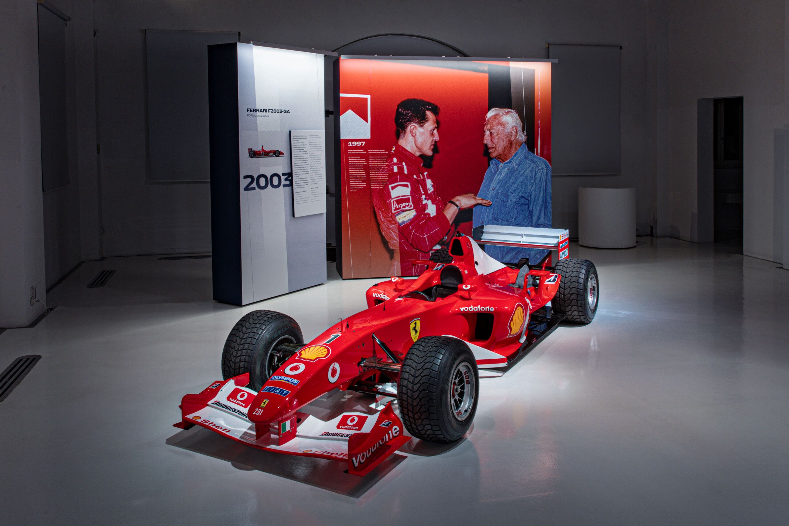 La rassegna si conclude con la Ferrari F2003 GA di Formula 1 presentata nel febbraio del 2003 con l’acronimo GA a rappresentare un tributo a Gianni Agnelli che era scomparso solamente il 24 gennaio del medesimo anno. La mostra del Museo Enzo Ferrari è stata descritta così da John Elkann, nipote di Gianni Agnelli e presidente di Stellantis e Ferrari: “La mostra che inauguriamo racconta un incontro straordinario: unisce da un lato le emozioni che le auto più belle del mondo suscitano in chi ama guidare, dall’altro l’enorme rispetto e la passione vera che mio nonno aveva per le auto di Maranello. Passione che lo portava a rendere speciale ogni Ferrari che possedeva e che siamo felici di condividere con tutti gli appassionati”.