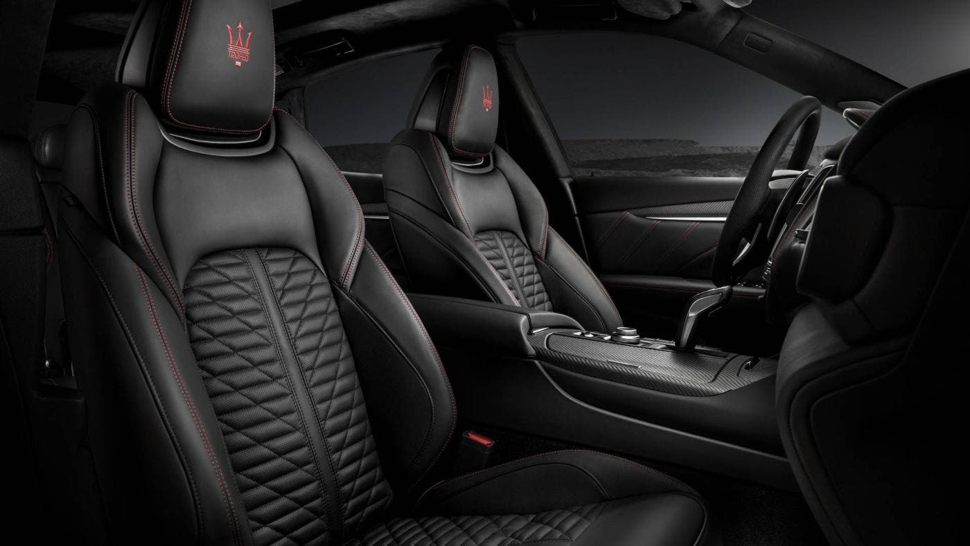 All’interno dell’abitacolo, il nuovo Maserati Levante Trofeo V8 presenta sedili sportivi sagomati rivestiti in pelle naturale “Pieno Fiore” che saranno disponibili nei colori rosso, nero e cuoio con impunture a contrasto e logo “Trofeo” ricamato sui poggiatesta. Da notare, inoltre, la presenza di nuovi dettagli in fibra di carbonio opaca e l’impianto audio Premium Surround Sound di Bowers & Wilkins da 1.280 watt con 17 altoparlanti.