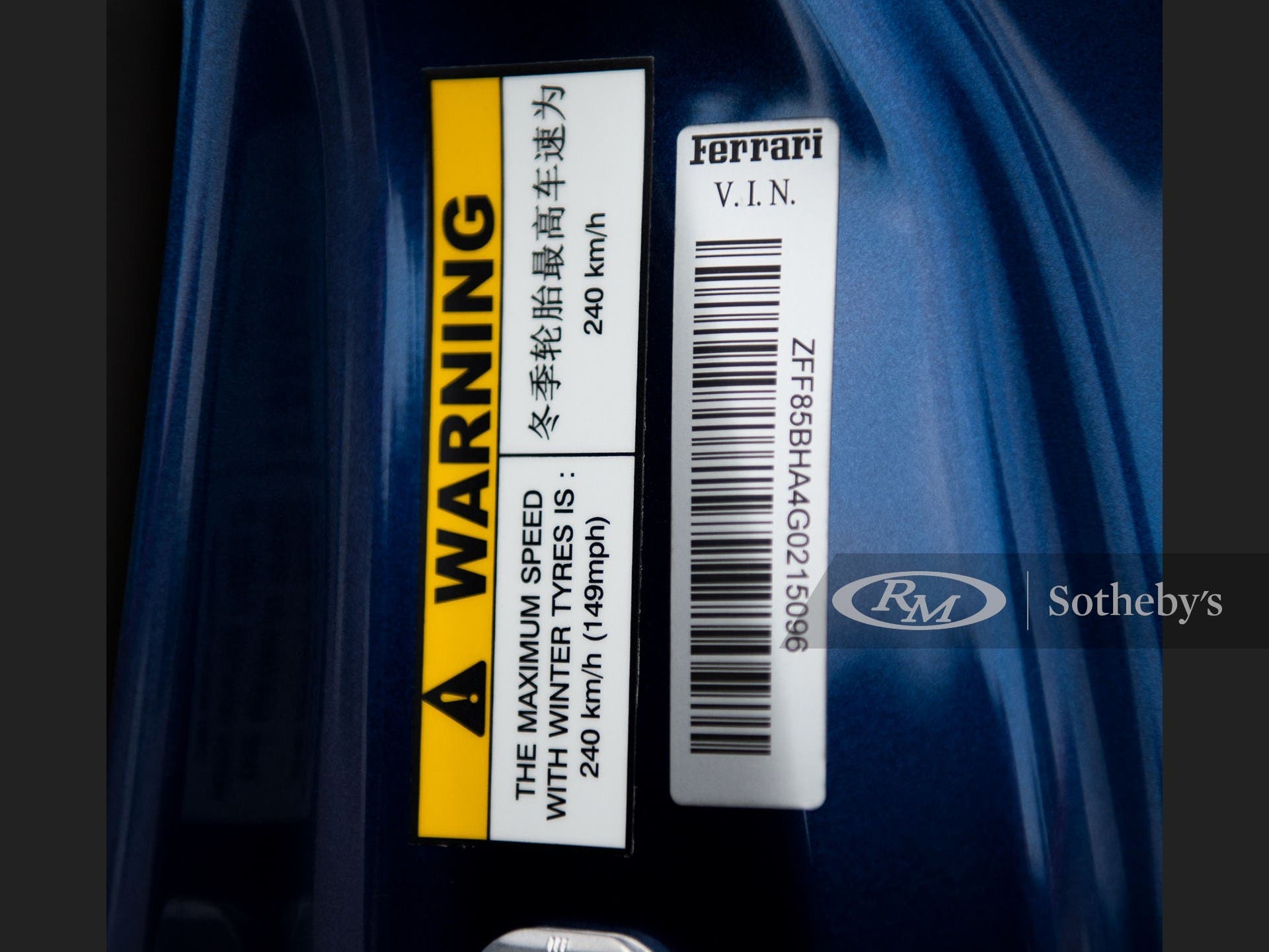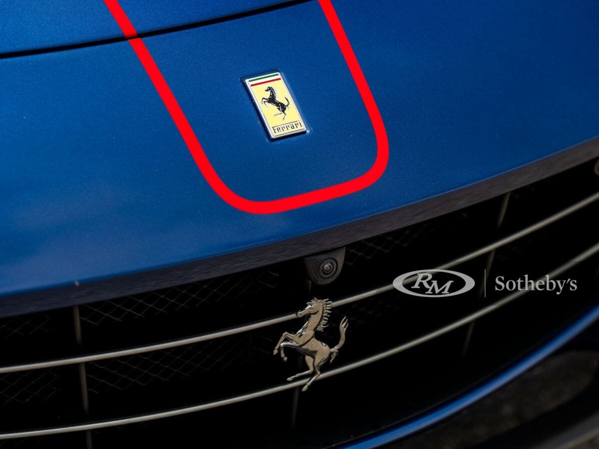 Grazie alle foto, però, possiamo vedere che dispone di una carrozzeria blu con inserti rossi presenti sul cofano motore, lo stemma giallo del cavallino rampante e delle pinze freno rosse nascoste dietro a cerchi in lega. Inoltre, sulla parte posteriore ci sono quattro terminali di scarico color bronzo. Da notare anche la luce di stop in stile F1 posta sempre sul retro.