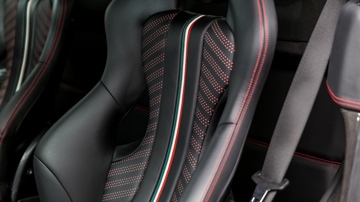 Non mancano pinze freno rosse, tunnel centrale in fibra di carbonio, inserti del cruscotto sempre in fibra di carbonio, sistema di sollevamento delle sospensioni anteriori, piantone dello sterzo elettrico, modanatura posteriore in fibra di carbonio, connettività iPod, loghi della Scuderia Ferrari, specchietti retrovisori elettrocromici sia all’interno che all’esterno, navigatore, Bluetooth, retrocamera e soglie sottoporta sportive.