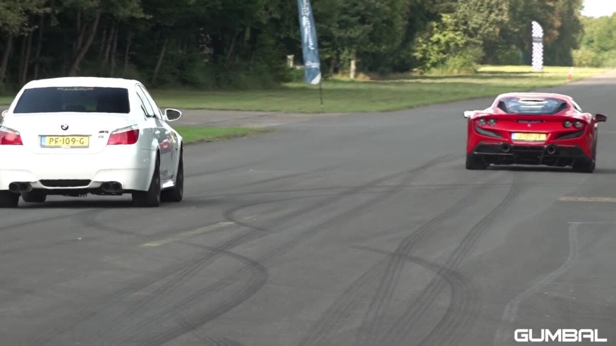 Ferrari F8 Tributo: la supercar V8 gareggia contro una BME M5 E6 con motore V10