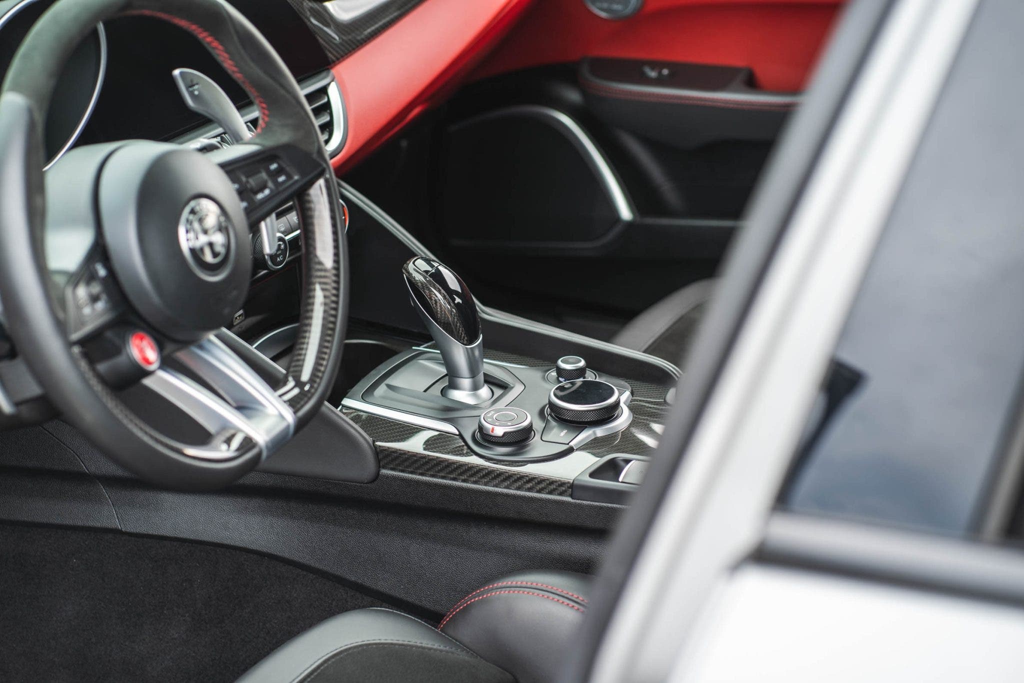 In base a quanto riportato dalla scritta presente sulla consolle lato passeggero, questa Alfa Romeo Giulia Quadrifoglio NRING del 2019 è la numero 26 delle 55 prodotte per il mercato nordamericano.