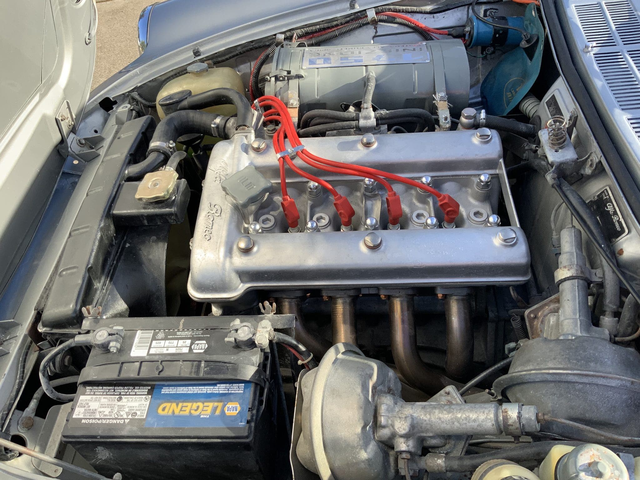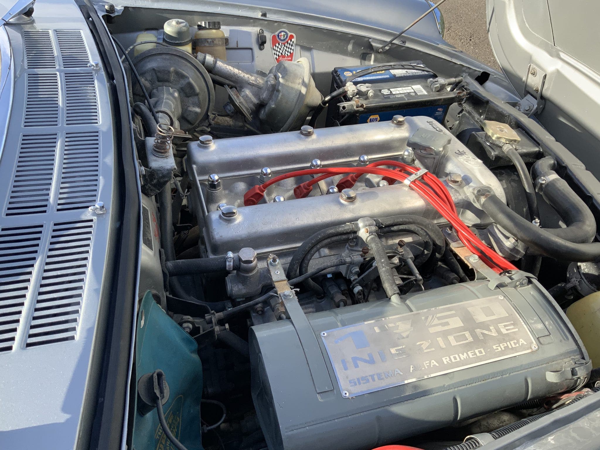Il quattro cilindri in linea da 1.799 cc è dotato del sistema di iniezione del carburante SPICA ed è stato smontato e ricostruito nel gennaio dello scorso anno in accordo col completo rifacimento della testata, la rettifica delle valvole, la levigatura del blocco, il ripristino della fasatura e la sostituzione della pompa dell’olio, delle valvole di aspirazione e scarico, delle molle delle valvole, dei cuscinetti di biella, pistoni e camicie, oltre al collettore di scarico e alla guarnizione della testata. Insomma, un set di lavori di fino utili a riportare al massimo delle prerogative questa splendida Alfa Romeo Spider del 1969.