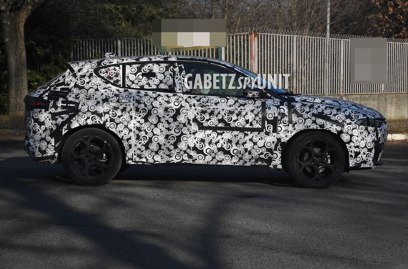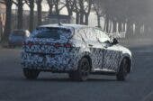 Si riconoscono poi le maniglie delle portiere che lasciano alla Concept sia l’impostazione a scomparsa, a filo carrozzeria, sia la collocazione per quanto riguarda l’accesso al divano posteriore. Si può infatti ormai confermare che la maniglia sulle portiere posteriori non sarà inglobata nella finestratura nei pressi del montante (come avevamo visto su diverse Alfa Romeo nel passato): l’Alfa Romeo Tonale disporrà infatti di una classica maniglia disposta in posizione tradizionale. C’è da dire che non si riesce a percepire molto altro, ma appare evidente anche che il lunotto sembra aver subito un piccolo incremento nelle dimensioni sebbene abbia conservato l’andamento a goccia con vertice rivolto verso il basso.