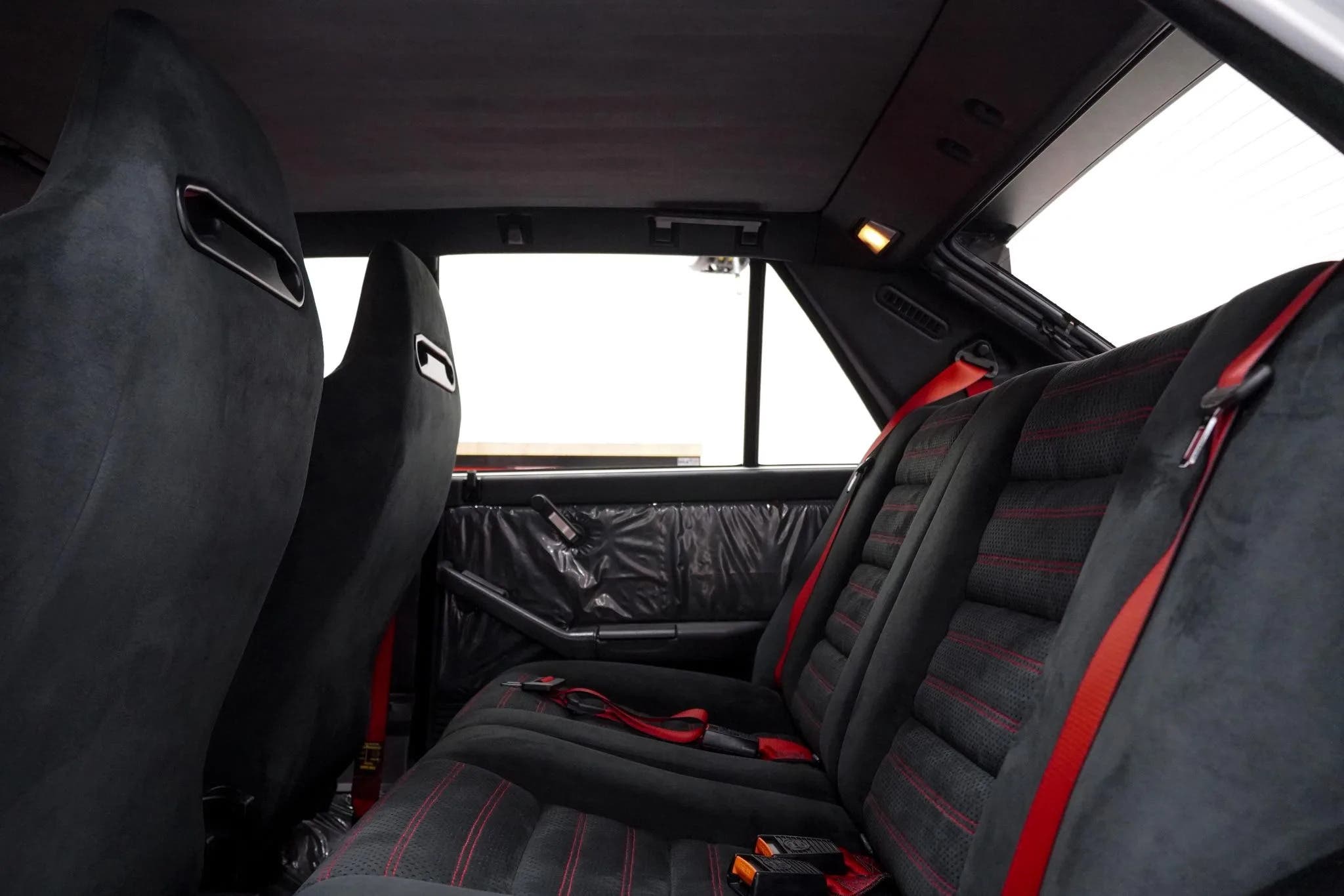 A bordo della Lancia Delta Integrale Martini 5 Evoluzione venduta all’asta ogni dettaglio era praticamente immacolato, a cominciare dalla splendida vernice bianca con strisce ispirate all’iconica livrea Martini dell’epoca per proseguire col propulsore a quattro cilindri sovralimentato da 2 litri che invia i valori di potenza alle quattro ruote motrici mediante un cambio manuale a cinque marce e un differenziale centrale ad accoppiamento viscoso Ferguson e differenziale posteriore a slittamento limitato Torsen.