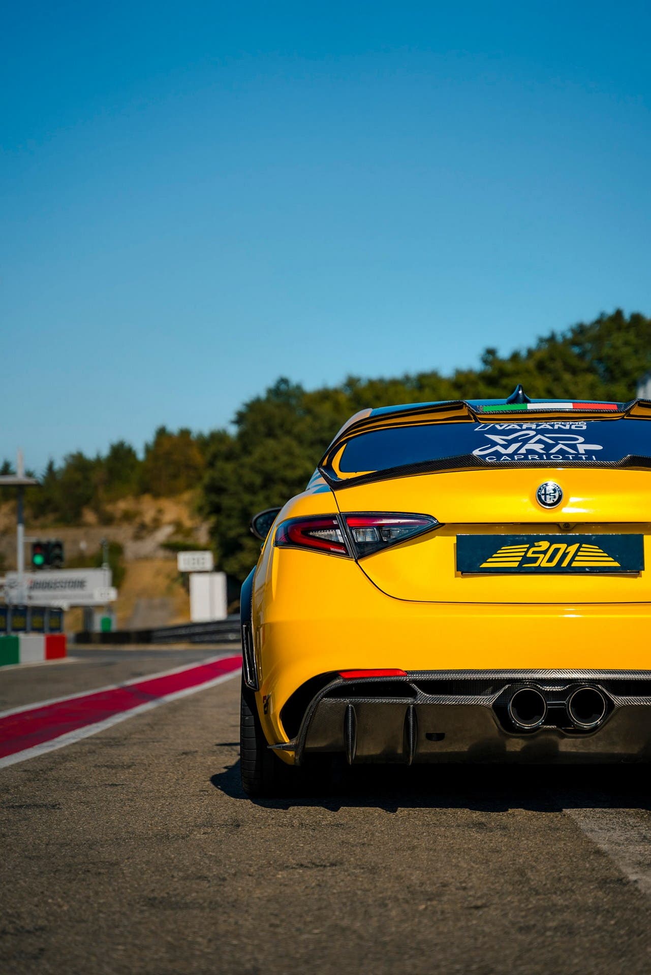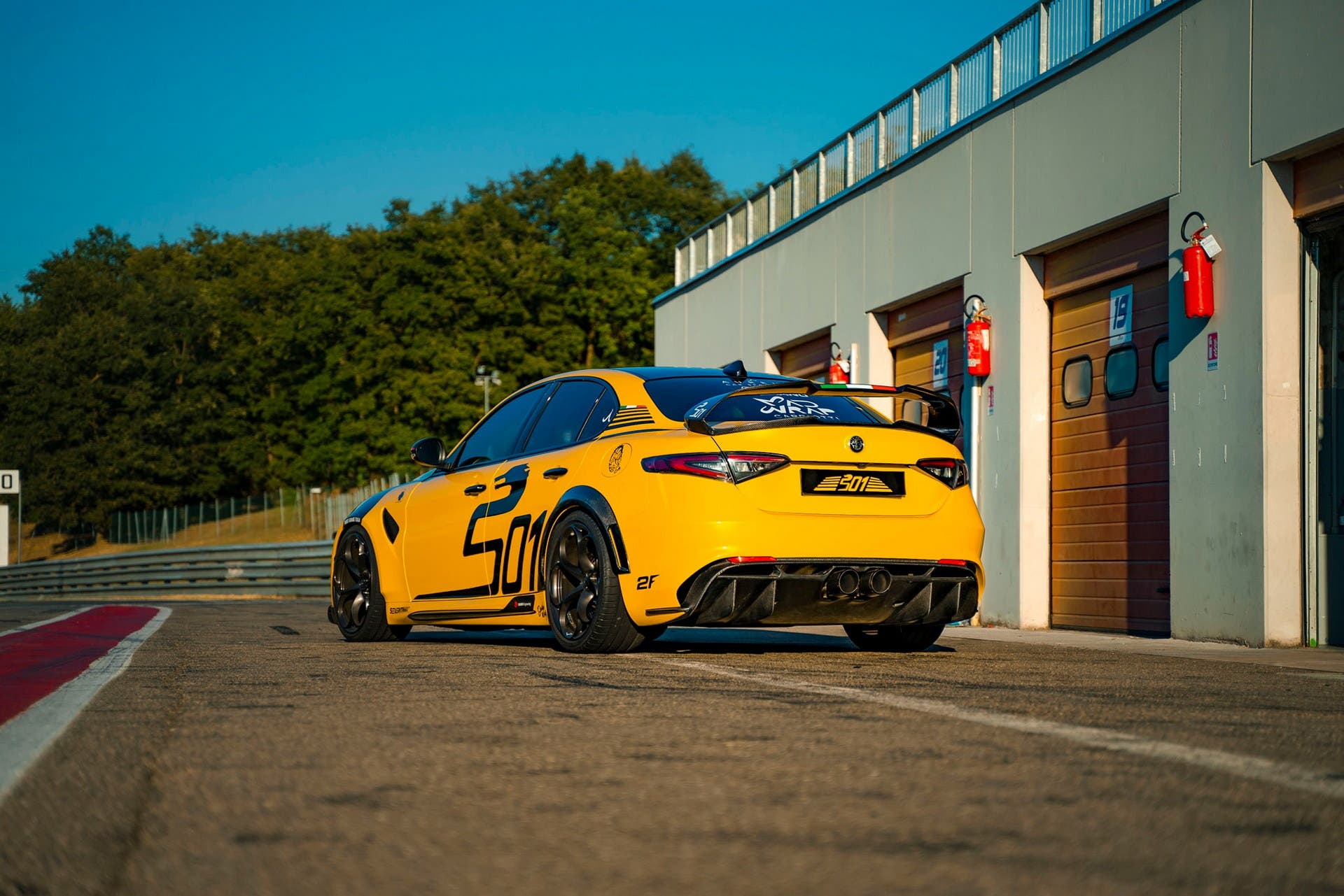 L’azienda dispone infatti di un bodykit che permette di riprodurre, piuttosto fedelmente, le linee e gli elementi stilistici e aerodinamici che caratterizzano proprio l’Alfa Romeo Giulia GTAm partendo da una Alfa Romeo Giulia tradizionale. Il primo esemplare già terminato è apparso in alcune immagini ufficiali scattate presso l’Autodromo di Varano de’ Melegari dotato di una livrea dedicata, dominata da uno sgargiante giallo. Le immagini ci mostrano una interessantissima copia dell’Alfa Romeo Giulia GTAm, abbinata anche ad un’altra applicazione messa a punto dalla stessa azienda: l’Alfa Romeo GT Sud-Est.