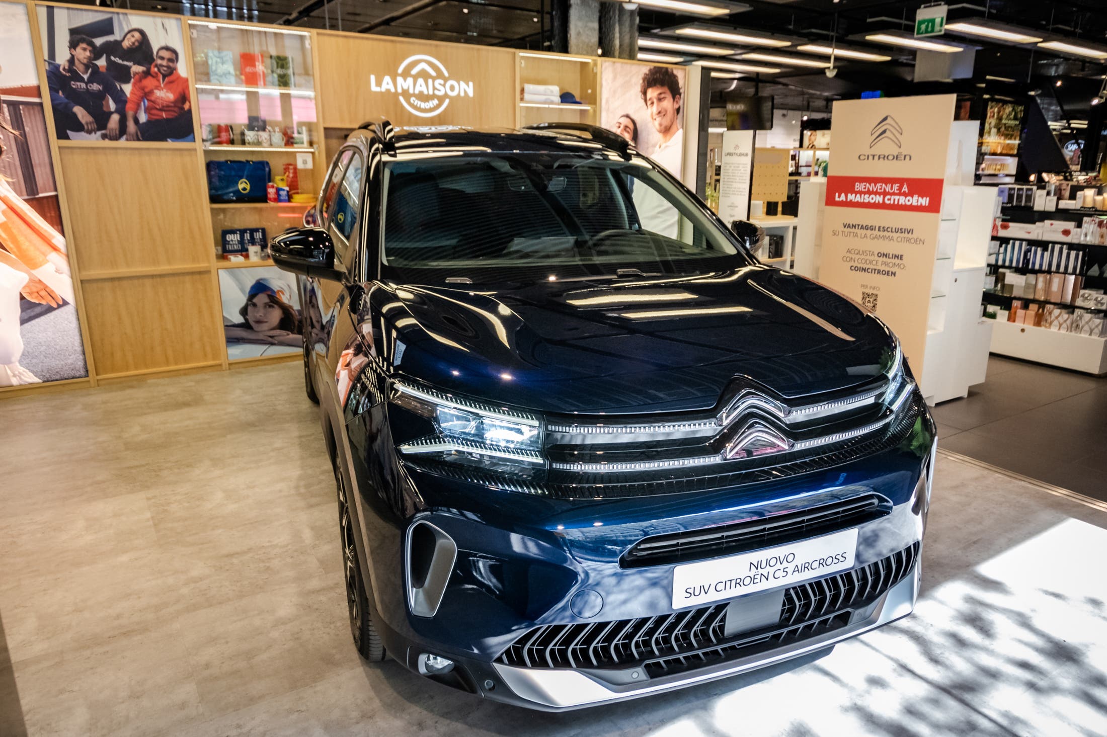 Inaugurata lo scorso maggio presso lo store COIN di Piazza V Giornate, ora “La Maison Citroën” di Milano (alla quale ha seguito l’inaugurazione dell’identico store di Catania, presto disponibile anche a Bologna) accoglie anche il nuovissimo SUV del costruttore del Double Chevron, ovvero la nuova Citroën C5 Aircross; parliamo dell’apprezzato SUV di Segmento C del costruttore francese. Il suo spazio conviviale ed accogliente offre un’esperienza unica, contemporaneamente intima e tecnologica in grado di unire il mondo fisico a quello digitale: un ambiente accogliente, confortevole e intimo come la propria casa che coniuga l’aspetto più innovativo e tecnologico del mondo digitale con cui scoprire l’intero universo del marchio francese di Casa Stellantis e acquistare con semplicità il modello desiderato direttamente online.