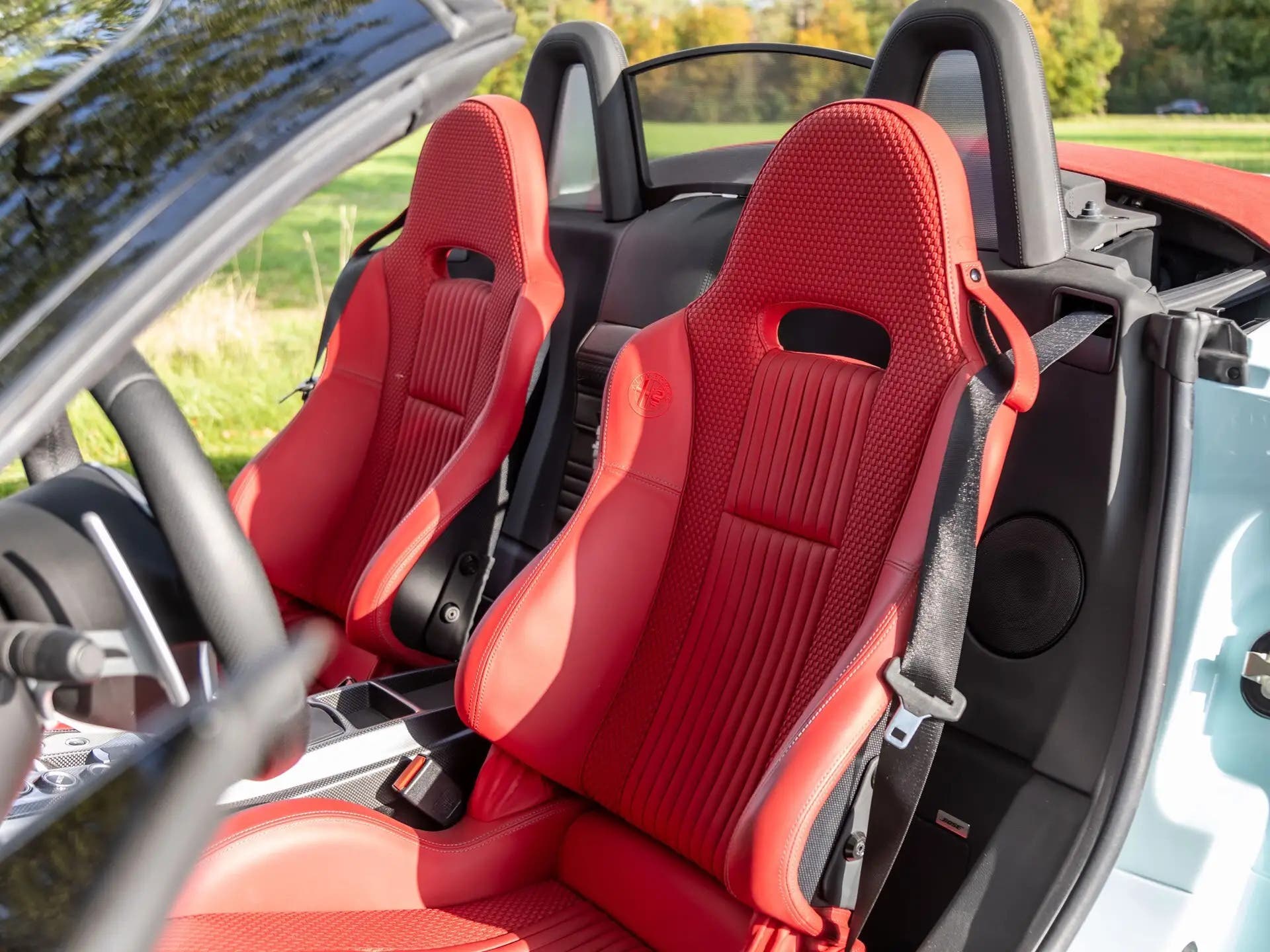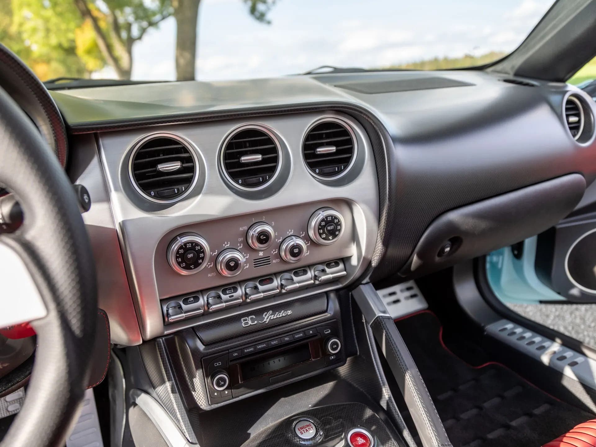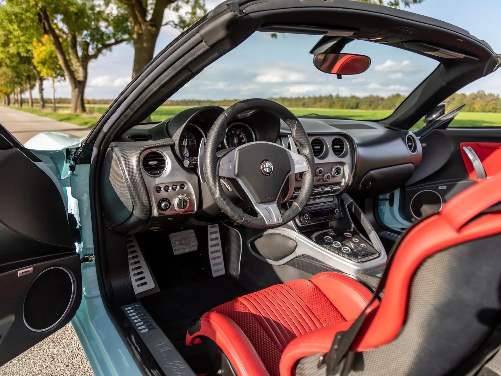 L’esemplare di Alfa Romeo 8C Spider che verrà proposto a fine novembre è uscita dalle linee produttive di casa Maserati nel mese di giugno del 2010 ed è caratterizzata da una elegante verniciatura Celeste con capote rossa a contrasto e interni in rosso e nero.