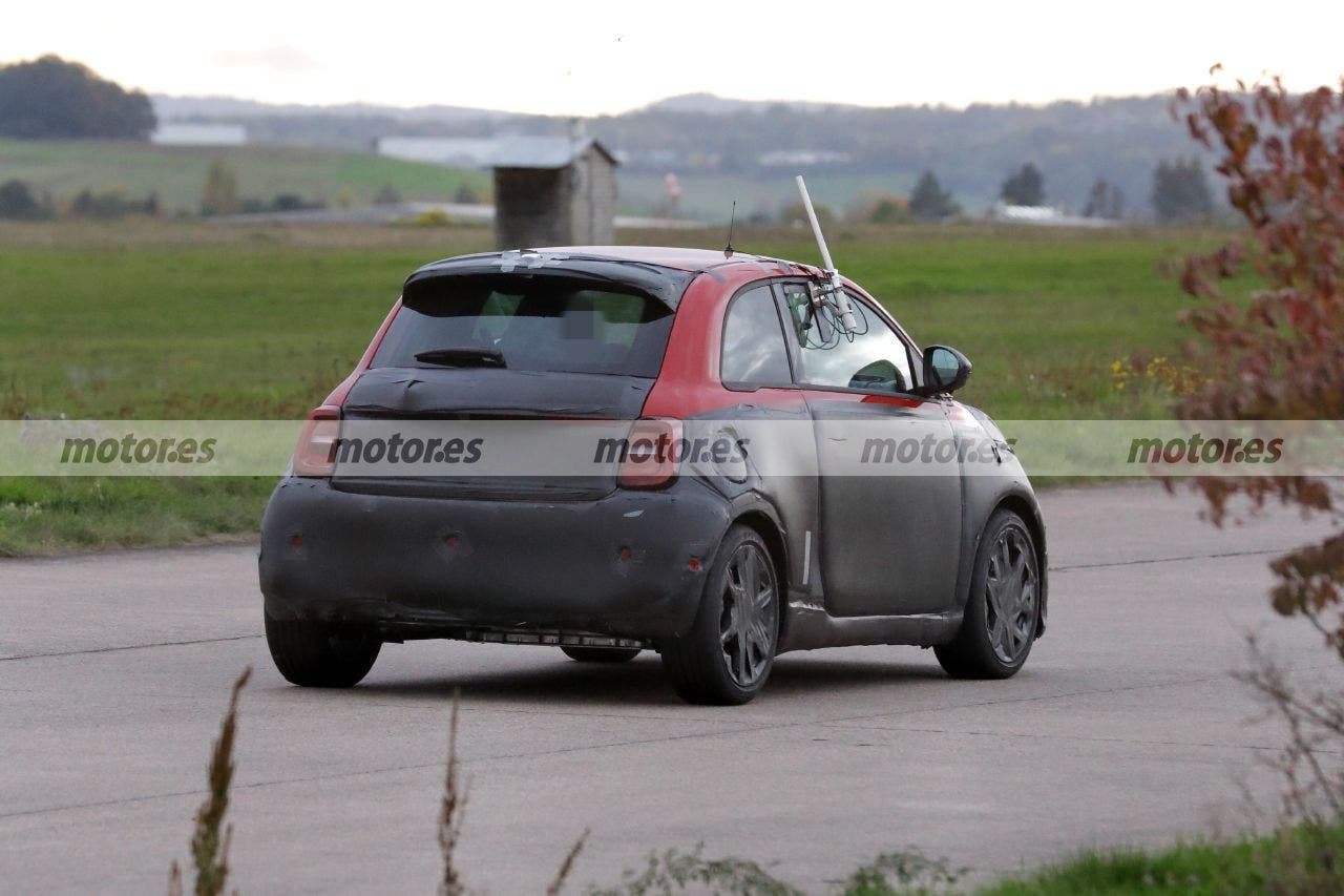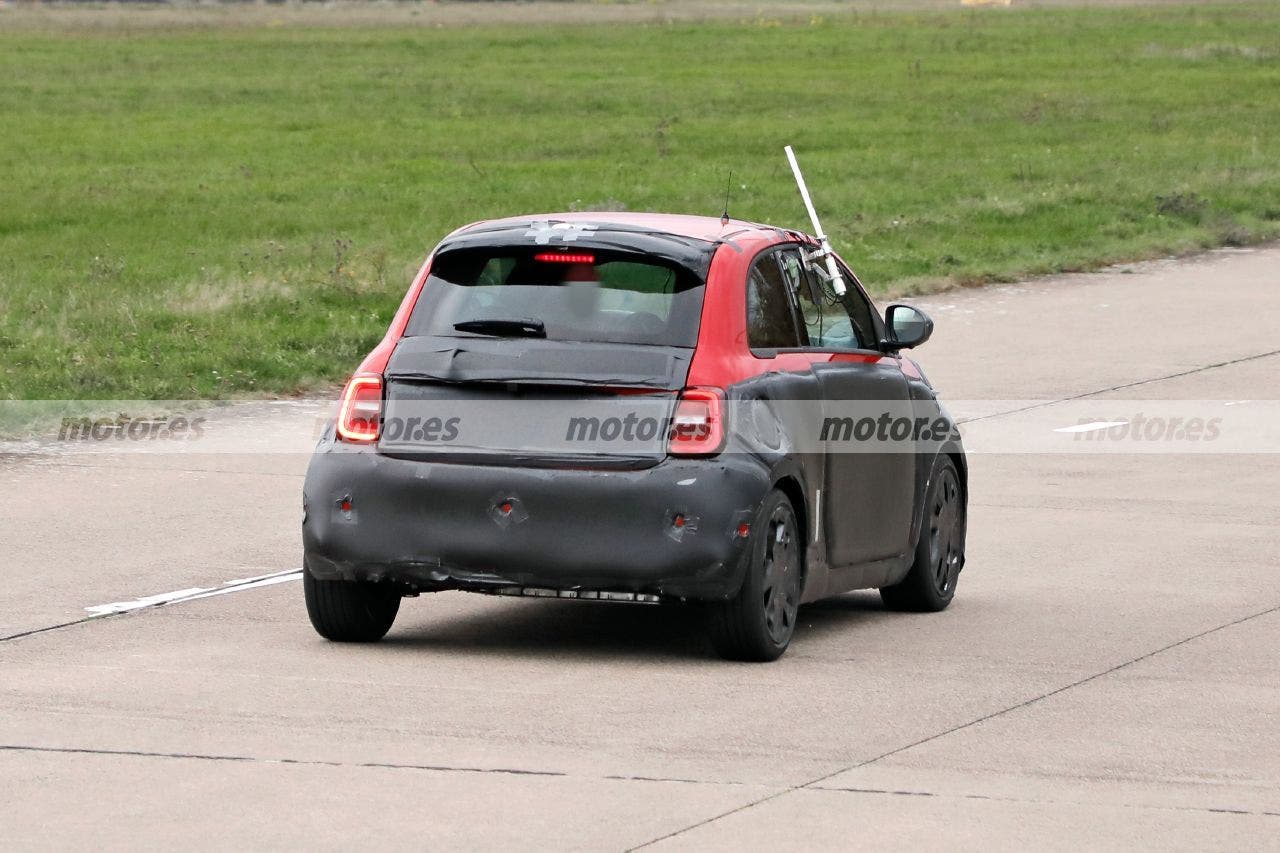 La versione più sportiva della Nuova 500 Elettrica adotta l’immancabile spoiler posizionato all’estremità superiore del lunotto e un paraurti posteriore che appare ora più bombato, come quello delle attuali sportive dello Scorpione che adottano però i tradizionali propulsori endotermici, sebbene a differenza di questi non dispone dello scarico. Inoltre, nelle immagini si può vedere l’alloggiamento della batteria di questa nuova Abarth 500 Elettrica, ben visibile sotto il paraurti posteriore.