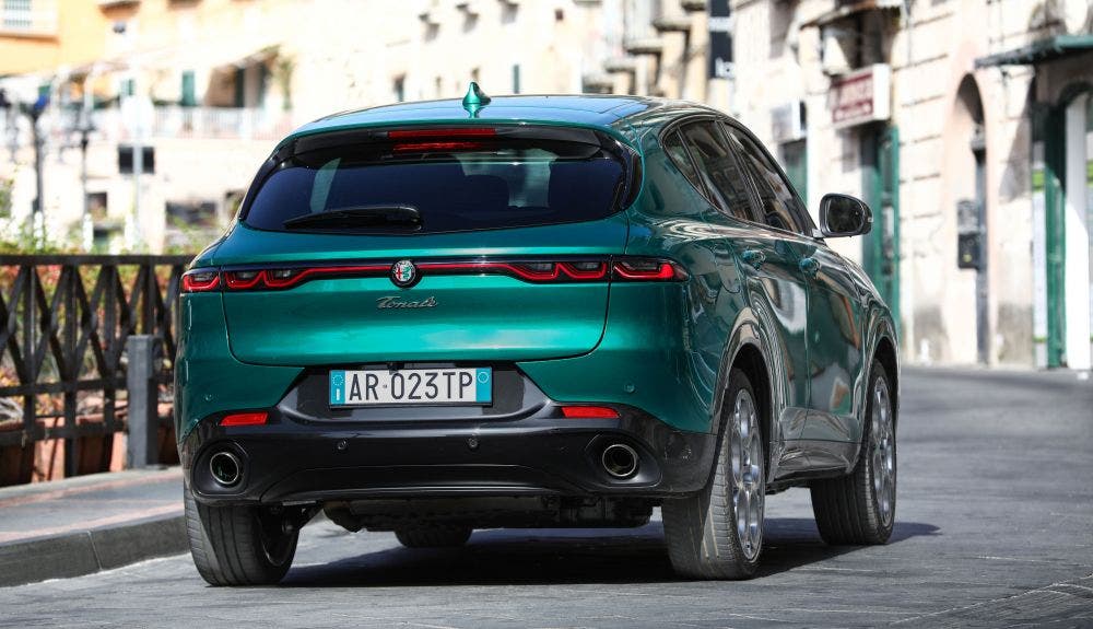A livello estetico l’Alfa Romeo Tonale PHEV Q4 si differenzierà dalle varianti che abbiamo già imparato a conoscere per la presenza di un ulteriore sportello, destinato alla ricarica elettrica, disposto sulla fiancata di sinistra. La novità più consistente, sempre per ciò che riguarda l’aspetto, è però rappresentata dalla presenza dei due scarichi ora a vista di forma circolare. C’è anche il logo del Biscione Elettrico sull’elemento vetrato del montante posteriore.