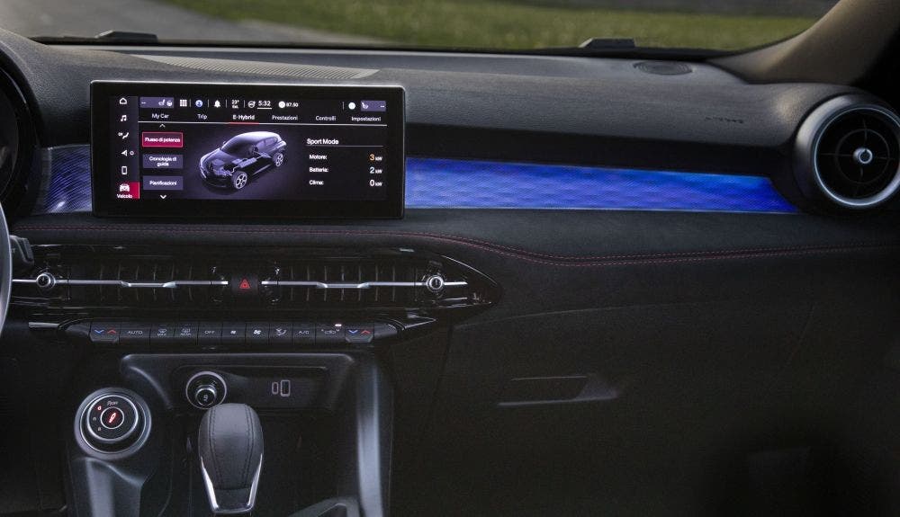 A livello di consumi, nel ciclo WLTP, il consumo medio sarebbe compreso appunto fra 1,1 e 1,4 litri ogni 100 chilometri con emissioni di CO2 comprese fra 26 e 33 g/km. La ricarica completa si effettua in 2 ore e mezza con caricabatterie da 7,4 kW disponibile in opzione. A livello di prestazioni i 280 cavalli di potenza erogati dal powetrain dell’Alfa Romeo Tonale PHEV Q4 permettono uno 0-100 km/h in appena 6,2 secondi e una velocità massima in elettrico pari a 135 km/h ovvero 206 km/h in modalità ibrida. Il C-SUV del Biscione permette anche di conservare la carica elettrica premendo un apposito tasto, mentre a livello di modalità di guida non manca il comando del DNA che offre la possibilità di scelta fra le modalità Dynamic/Sport, Normal/Hybrid e Advance Efficiency/Eco che variano l’erogazione della potenza meccanica, la gestione della trasmissione, la rigenerazione in frenata (in modalità Advance permette il cosiddetto veleggiamento).