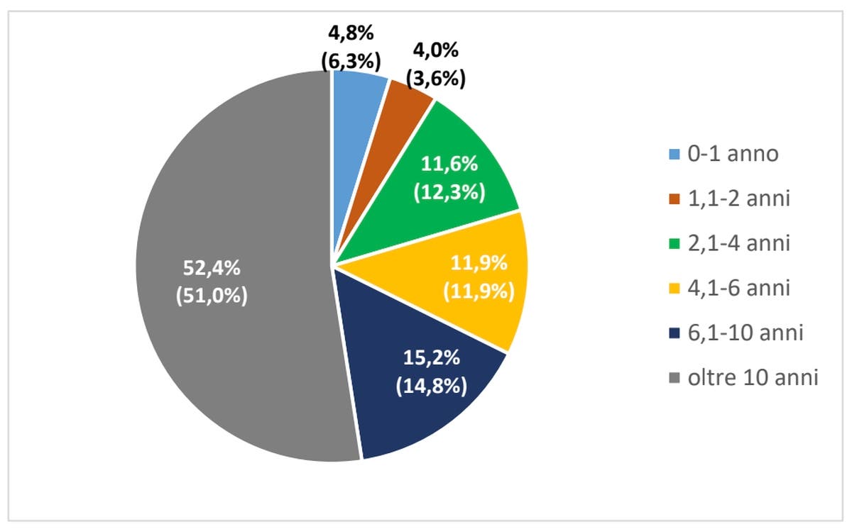 Continua a salire la quota dei trasferimenti netti di vetture con oltre 10 anni di anzianità, al 52,4% in gennaio. È salita al 15,2% la quota delle auto da 6 a 10 anni mentre è rimasta stabile quella delle vetture da 4 a 6 anni (11,9%). In contrazione, la quota delle auto più fresche da 0 a 1 anno (al 4,8%), per la riduzione delle km 0, e quella delle auto da 2 a 4 anni (all’11,6%).