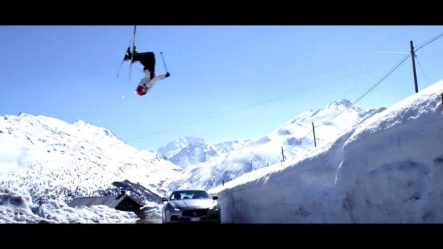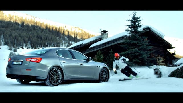 A più di 2.000 metri di altezza, una Maserati Ghibli S Q4 a trazione integrale è stata messa nelle condizioni di gareggiare contro un ex campione mondiale di sci del calibro di Giorgio Rocca, specialista fino al 2010 dello slalom speciale a livello internazionale. L’auto, comandata dalla stella mondiale del rally Alex Fiorio (anche lui ex campione del Mondo nel suo sport di competenza), durante la pubblicità è chiamata a tenere testa all’atleta, tra fuoripista spettacolari con terreni ghiacciati e grandi salti e manovre.