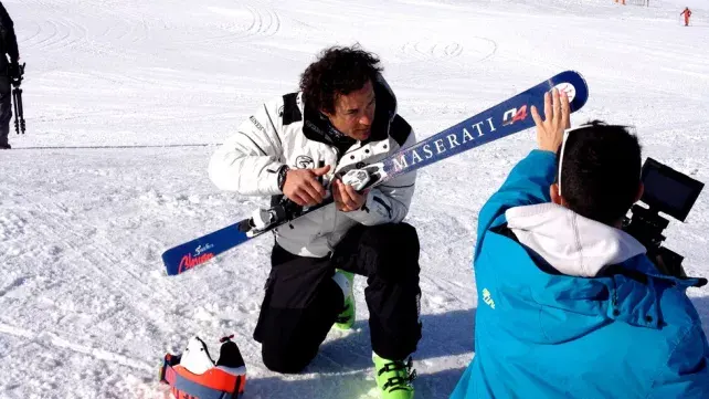 Pubblicità Maserati Ghibli S Q4, sfida a Giorgio Rocca sugli sci