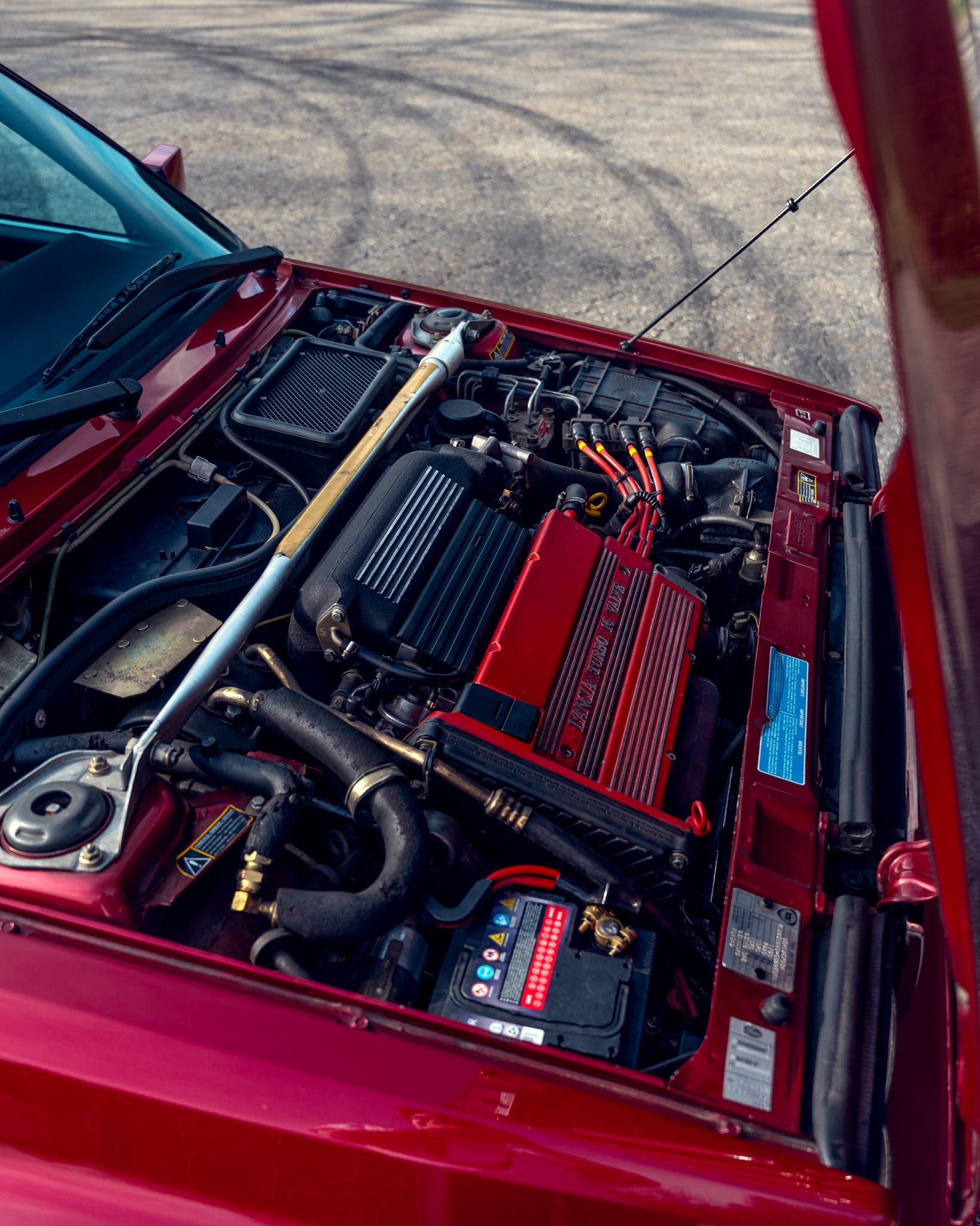 Come dicevamo, gli esterni sfoggiano un’intensa tonalità di rosso metallizzato, mentre gli interni sono rivestiti con una netta prevalenza della nuance beige. I sedili Recaro in pelle con loghi HF in rilievo sui poggiatesta, la pedaliera in lega OMP e i poggiapiedi passeggero in stile rally, completano il pacchetto, insieme alla targhetta sulla console centrale, che riporta il numero di serie. Ad accompagnare il lotto ci pensano le fatture di manutenzione, i manuali di fabbrica e il libretto dei servizi. Questa Lancia Delta HF Integrale II ‘Dealers Collection’, splendidamente curata, è una tentazione irresistibile per quegli appassionati in cerca di una rara edizione di un classico italiano molto amato, con un basso chilometraggio all’attivo.