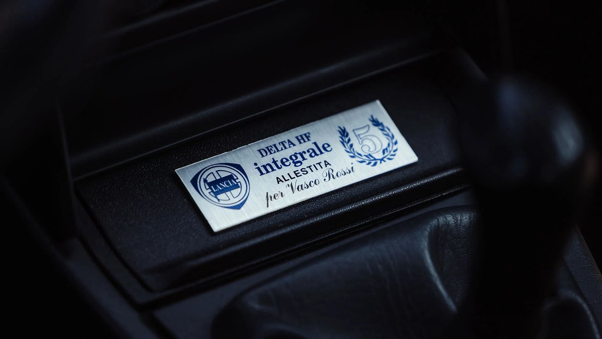 Non ci sono dubbi, la targhetta disponibile all’interno dell’abitacolo posta davanti alla leva del cambio manuale a cinque rapporti dice chiaramente che questa Lancia Delta HF Integrale “Martini 5” è stata appositamente “allestita per Vasco Rossi”. Un vero e proprio certificato di autenticità che rende questo modello, unico in nero della seria limitata, decisamente unico. La stessa targhetta risulta inoltre assolutamente unica poiché la stessa placca color argento veniva utilizzata sugli altri esemplari della serie per indicarne la numerazione, in relazione ai soli 400 esemplari realizzati.