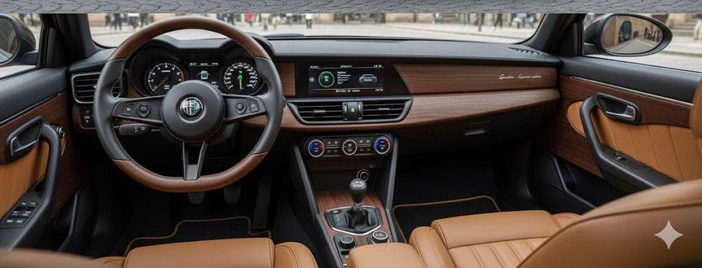 All’interno, il concept di questa nuova Alfa Romeo Giulia 1.6 super immagina un abitacolo dove artigianalità e tecnologia si incontrano: pelle pregiata, finiture in legno autentico e una plancia che integra strumentazione digitale avanzata con ergonomia ispirata al passato. Ogni elemento è pensato per offrire un’esperienza di guida immersiva, senza rinunciare al comfort e alla raffinatezza tipica del marchio.