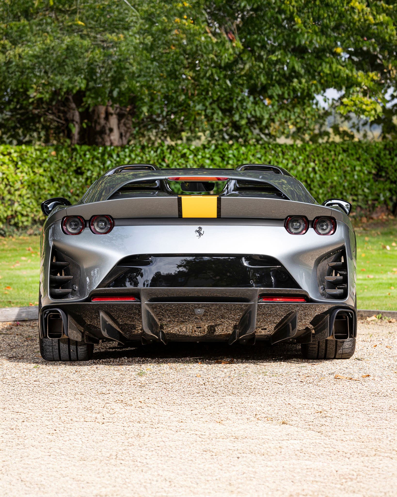 I cavalli sono 830 e si concedono al pilota con una immediatezza mozzafiato. Incredibili le cifre prestazionali, illustrate da un’accelerazione da 0 a 100 km/h in 2.85 secondi e da una velocità massima di 340 km/h. L’auto in vendita è stata importata nel Regno Unito da Stratstone Ferrari Colchester e immatricolata per la circolazione stradale il 30 settembre 2023. Usata con estrema parsimonia, è un autentico gioiello.