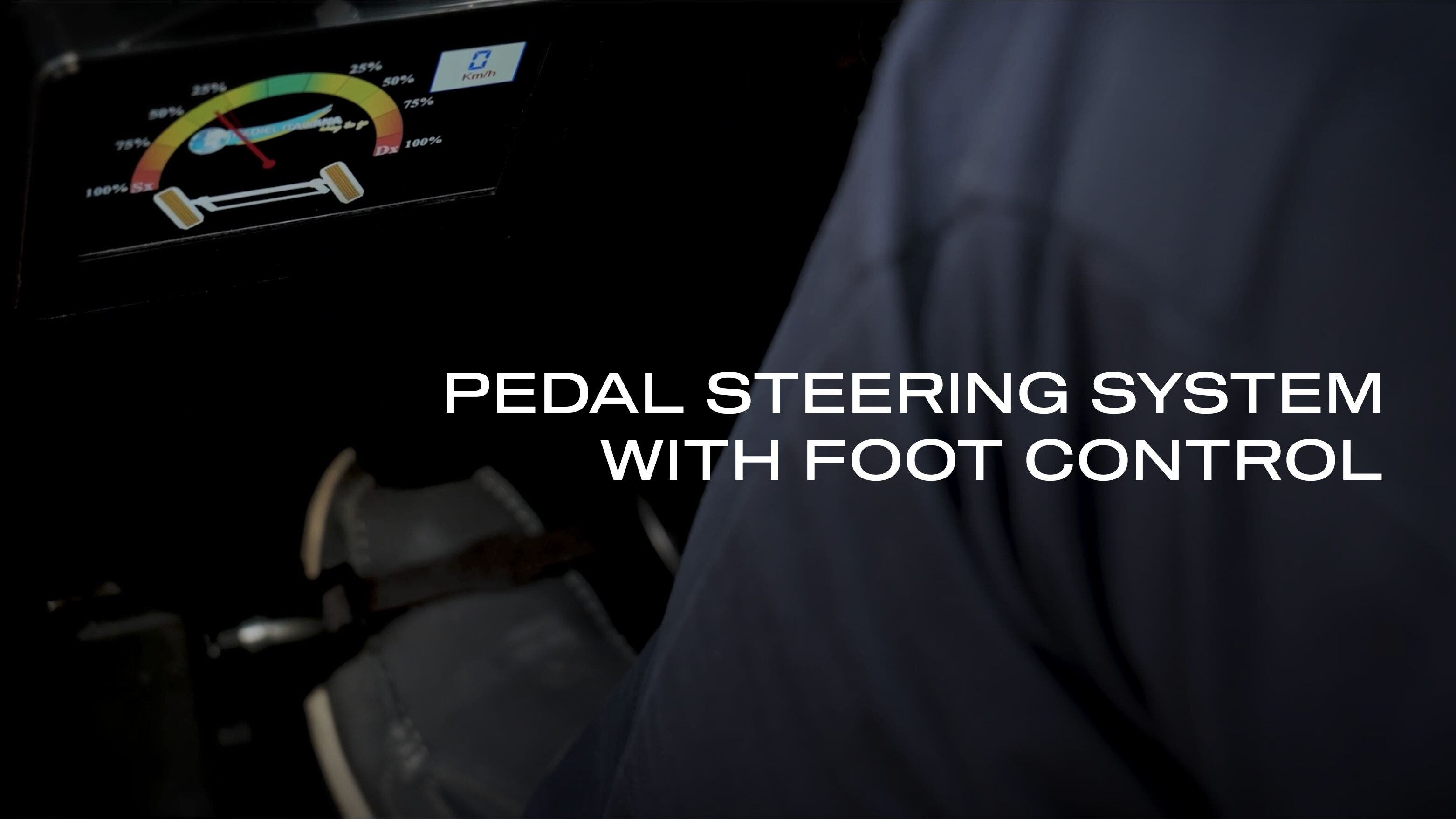 - Un sistema di sterzo a pedale (DGS03): ovvero un sistema elettromeccanico con due motori che permette di sterzare sfruttando il solo movimento dei pedali con architettura ridondante, supportata da un display TFT che garantisce la disponibilità di un feedback costante;